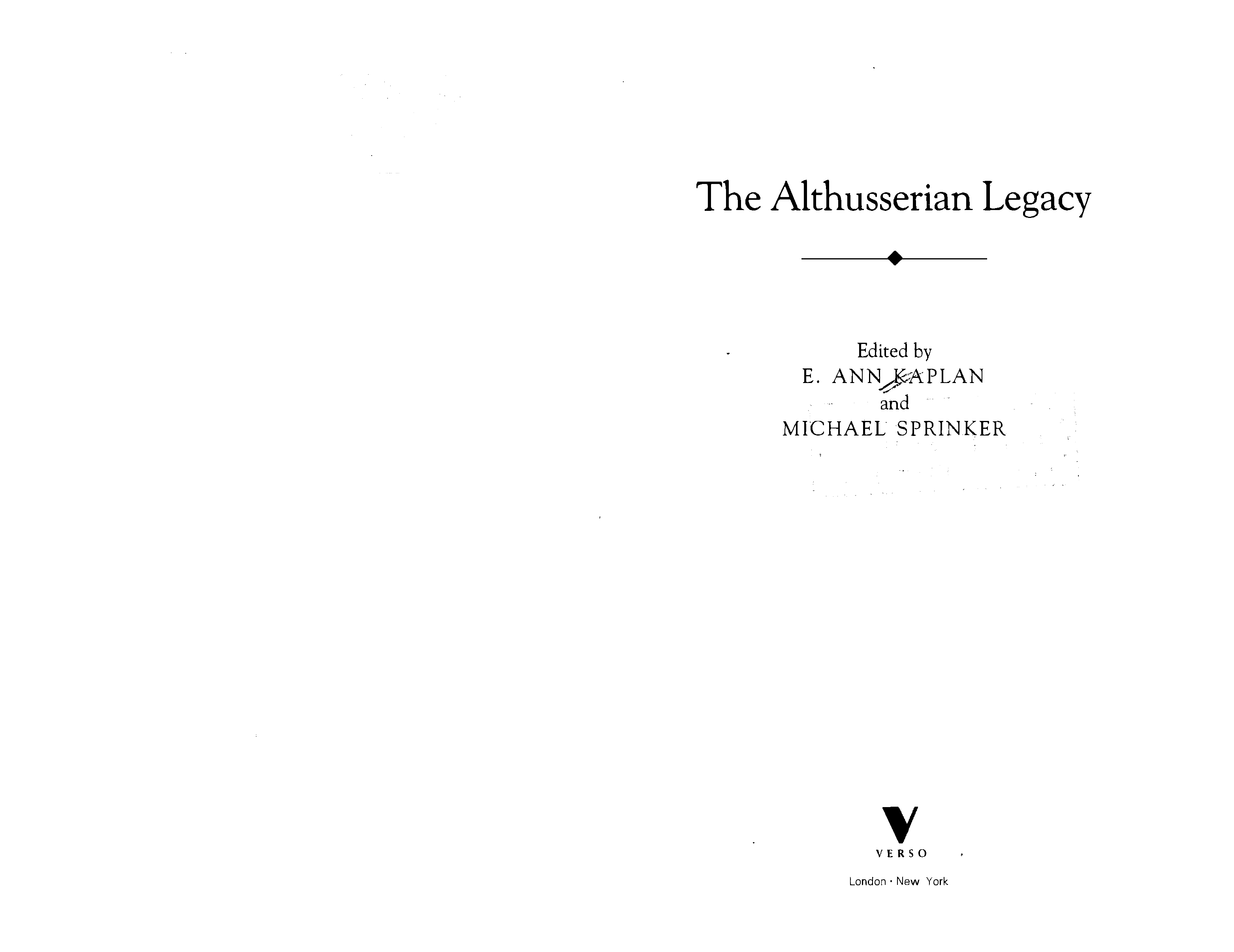 (E. Ann Kaplan, Michael Sprinker)