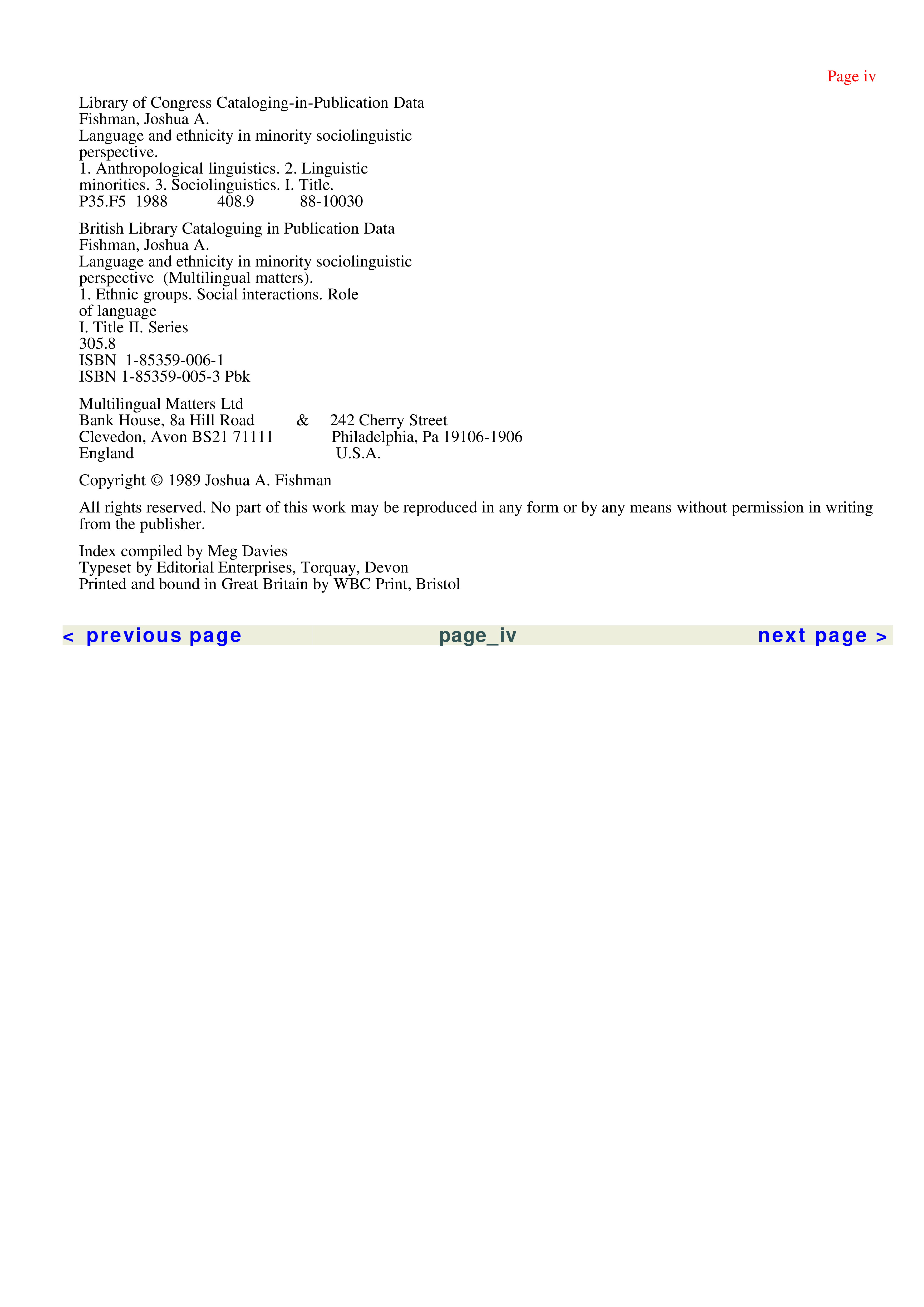 "Language & Ethnicity in Minority Sociolinguistic Perspective " - читать интересную книгу автора (Joshua A. Fishman) |