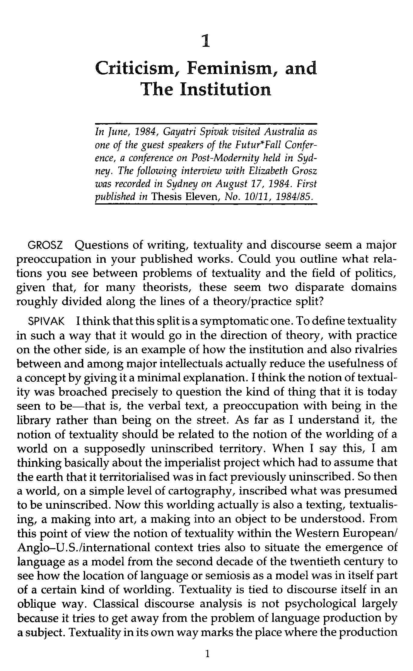 "The Post-Colonial Critic: Interviews, Strategies, Dialogues " - читать интересную книгу автора (Gayatri Chakravorty Spivak (author), Sarah Harasym (editor)) |