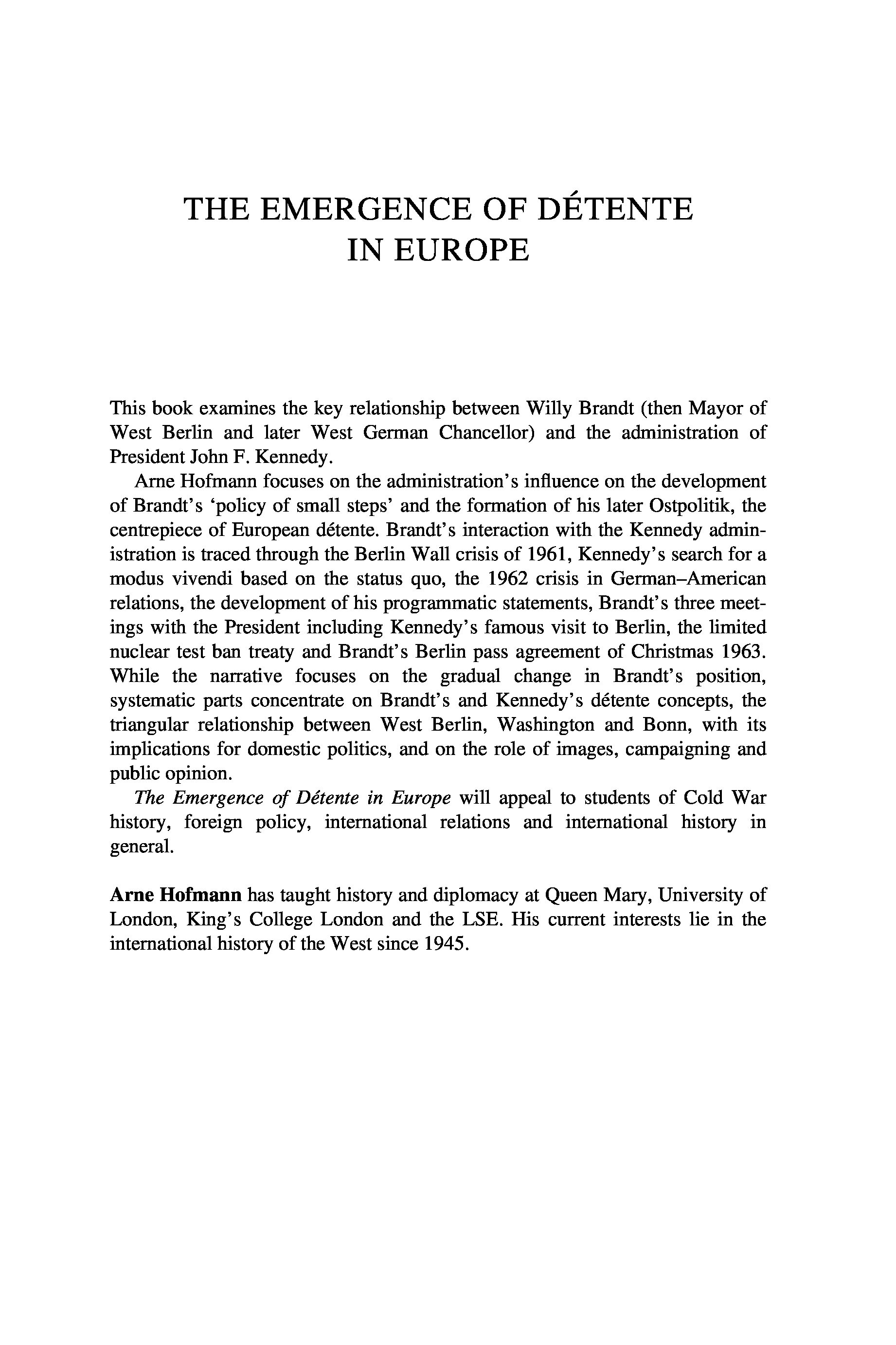 "The Emergence of Détente in Europe: Brandt, Kennedy and the Formation of Ostpolitik (Cold War History) " - читать интересную книгу автора (Arne Hofmann) |