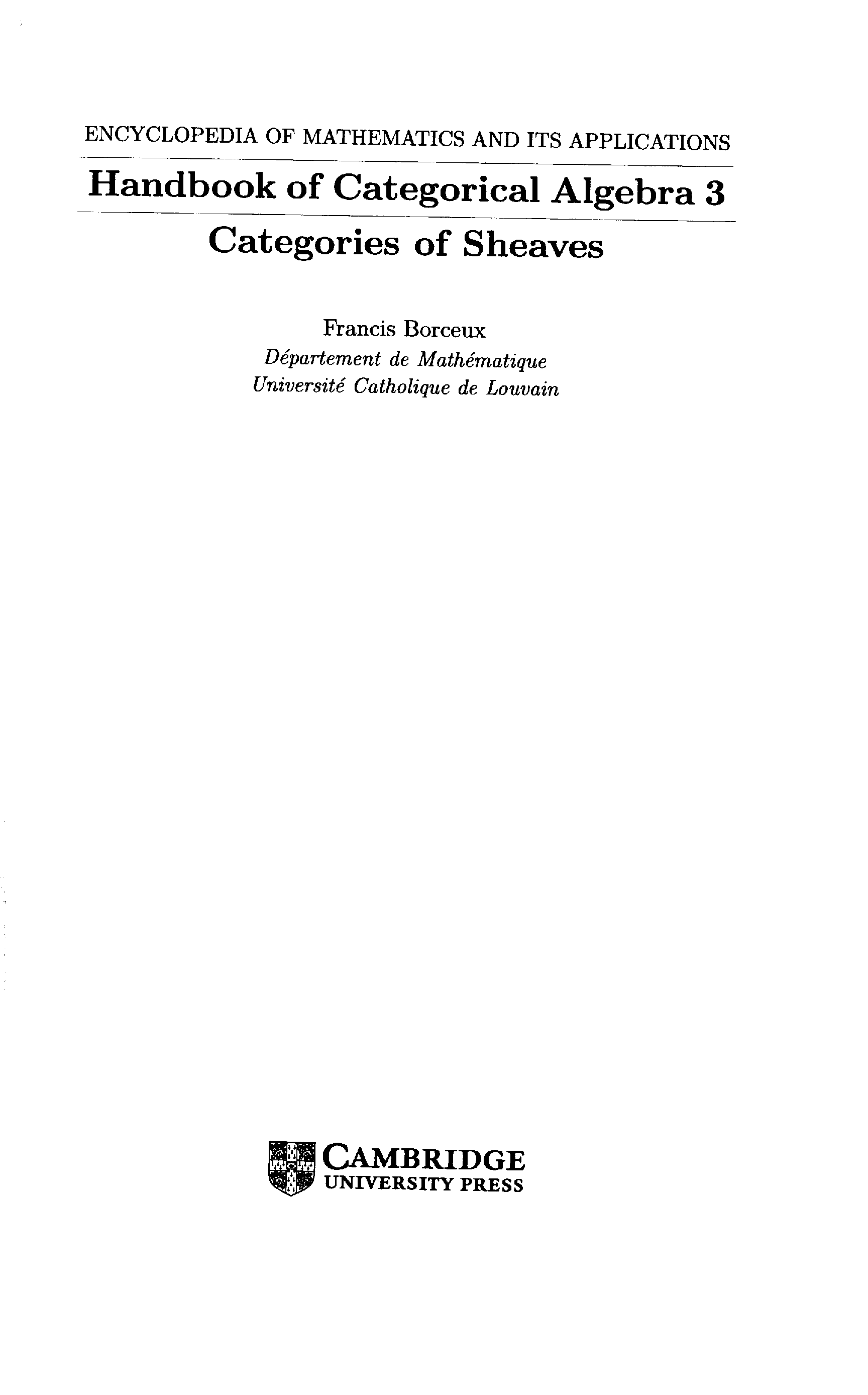 "Handbook of Categorical Algebra 3: Categories of Sheaves " - читать интересную книгу автора (Francis Borceux) |