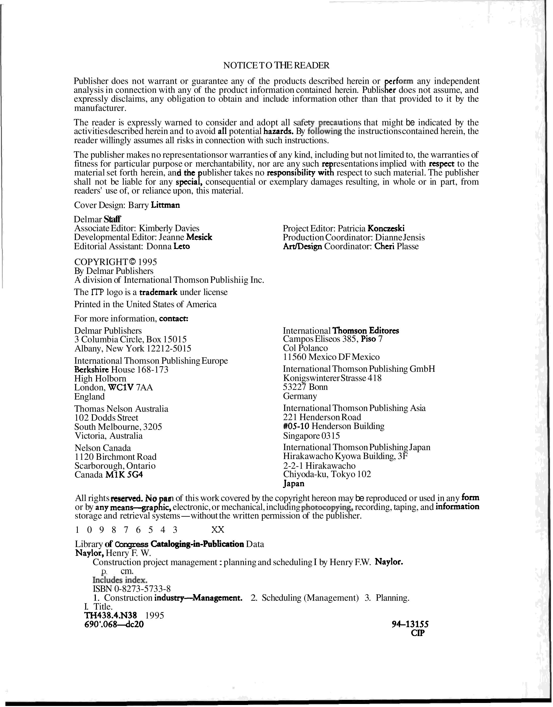 "Construction Project Management: Planning and Scheduling (Trade, Technology & Industry) " - читать интересную книгу автора (Henry F. Naylor, Naylor)