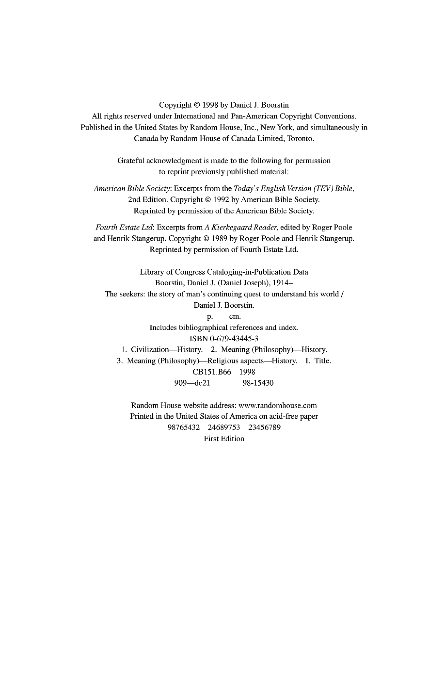 "The Seekers: The Story of Man's Continuing Quest to Understand His World " - читать интересную книгу автора (Daniel J. Boorstin) |