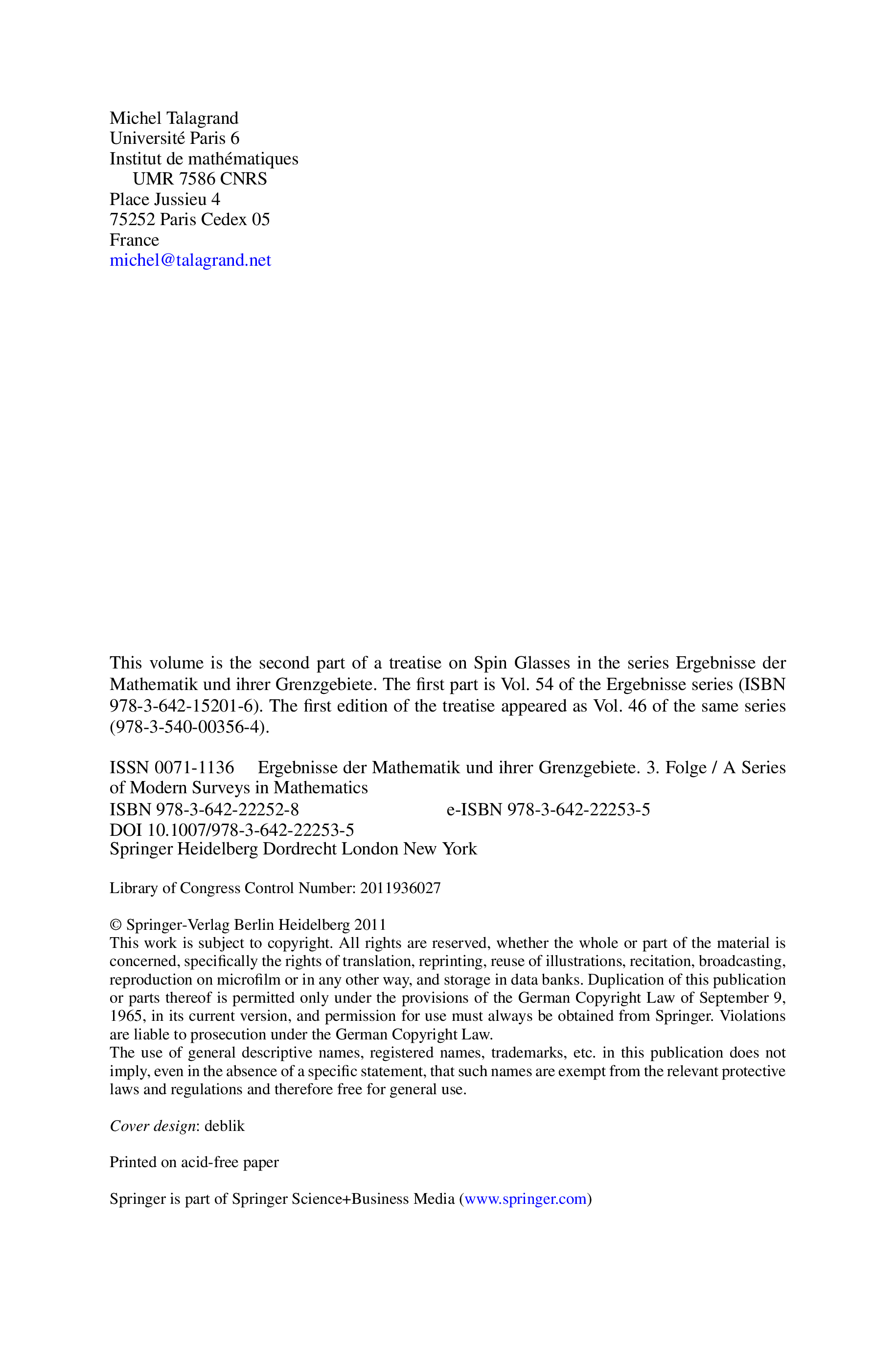 "Mean Field Models for Spin Glasses, Volume II: Advanced Replica-Symmetry and Low Temperature " - читать интересную книгу автора (Michel Talagrand) |