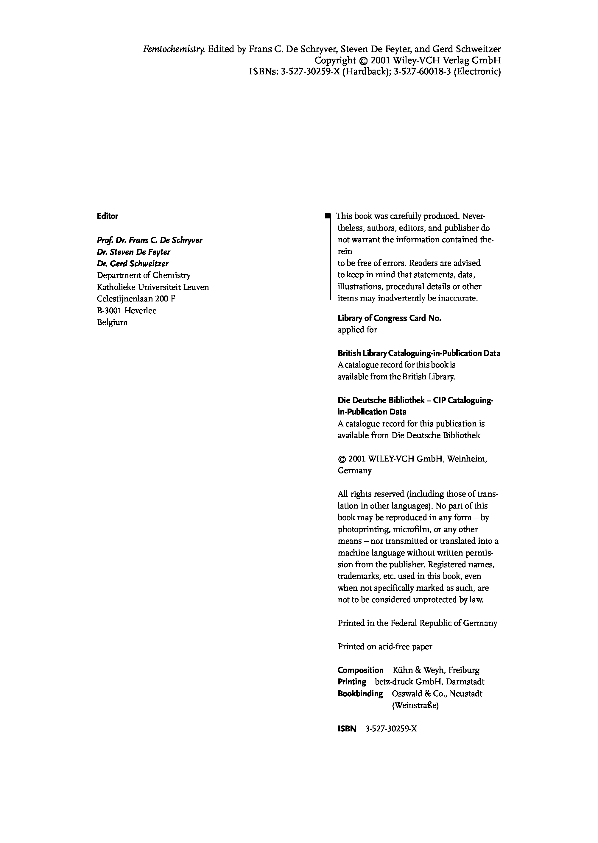 "Femtochemistry: With the Nobel Lecture of A. Zewail " - читать интересную книгу автора (Frans C. De Schryver, Steven De Feyter, Gerd Schweitzer, Ahmed H. Zewail) |