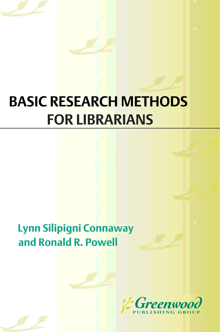"Basic Research Methods for Librarians (Library and Information Science Text Series) " - читать интересную книгу автора (Lynn Silipigni Connaway, Ronald R. Powell) |