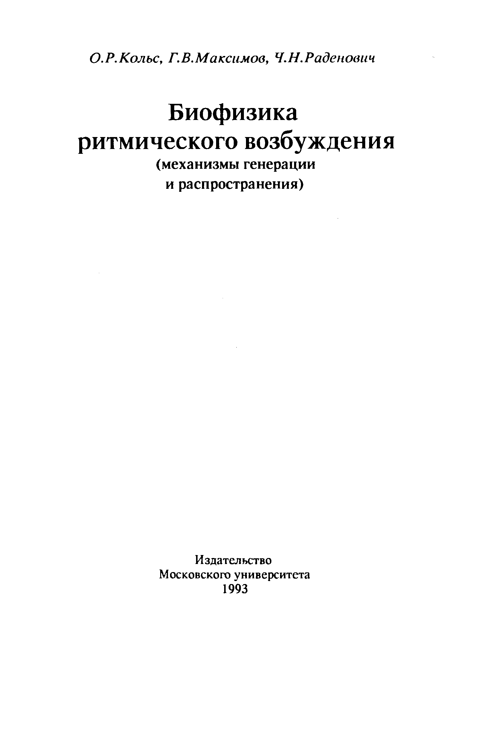 "Биофизика ритмического возбуждения (механизмы генерации и распространения)" - читать интересную книгу автора (О.Р.Колье, Г.В.Максимов, Ч.Н.Раденович ) |