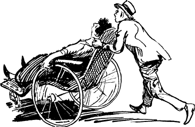 Джерри кинулся к дверям, забыв даже приготовить завтрак жене. Джоан последовала за мужем, и едва Джерри открыл дверь, она вцепилась ему в полы пиджака и повисла, рыдая. Но хиропрактик принял решение и не намерен был отступать. Он предоставил жене тащиться за ним хвостом до самой лестничной площадки, но здесь повернулся и сделал бешеный рывок. Джоан не удержалась и упала. И тут оправдалась старинная мудрость: вверх надо лезть и лезть, а вниз — только один шаг. Набрав разгон, Джоан покатилась со ступеньки на ступеньку и остановилась лишь у наружной двери. Руководимая женским инстинктом, она защитила руками лицо — это удалось ей, но только в ущерб спине. На лице не оказалось ни единой царапины. Зато спина — и в особенности ее нижняя часть — соприкоснулась непосредственно с одиннадцатью железобетонными ступеньками. Джоан жалобно застонала и попыталась подняться, но ноги отказались служить разбитому телу, и она тут же, на месте, упала без чувств. Джерри, смотревший этот спектакль с высоты одиннадцати ступенек, заметил, что Джоан была теперь, несомненно, сама собой. Она уже не играла — она действительно потеряла сознание. Джерри поспешил к жене, бережно поднял ее на руки и отнес в спальню. Джоан очень тихо простонала и чуть приоткрыла глаза. Затем она словно погрузилась в глубокий сон. Джерри бросился к телефонному справочнику и стал искать адреса врачей, живущих неподалеку. Он снял трубку и едва успел набрать три-четыре цифры, как Джоан устало спросила: — Джерри, кому ты звонишь? — Ты жива? — воскликнул он, положил на место трубку и подбежал к постели жены. — Джоан, ты очень ушиблась? Вызвать врача или скорую помощь? — Не надо скорую помощь, — ответила Джоан слабым голосом, — она так ужасно орет!.. Хуже, чем пожарная машина. — Что же мы будем делать? — На той стороне улицы, недалеко, есть дом врачей… Отвези меня туда… — На чем? На такси? — Не знаю, — ответила Джоан страдальческим голосом. — Теперь ты видишь, как нужно было бы нам иметь собственную машину. Джерри, мы должны купить машину сегодня же… Джерри вспомнил, что этажом выше жил некий ветеран первой мировой войны, у которого было современное кресло-коляска. Инвалид был ранен в руку, но, уезжая каждый вечер просить милостыню, он пользовался этим экипажем. Он имел законное разрешение нищенствовать в определенном месте и в определенные часы. Щадя свои ноги, он ездил в коляске, которая внушала уважение — дорогу ей уступали даже автомобили. Ни слова не говоря, Джерри оставил свою жену спокойно лежать в постели, а сам помчался наверх. Ветеран войны Конелли быстро согласился на предложение Джерри и сдал ему свою коляску напрокат на исключительно льготных условиях: полдоллара в час или доллар за три часа. Но необходимо было вернуть транспортное средство владельцу не позднее шести часов вечера, когда в мире темнеет и на улицах становиться светло. Коляска удобно помещалась в лифте. У нее было ручное и ножное управление, смена скоростей и замечательные тормоза. Развернувшись на площадке своего этажа, Джерри захотел опробовать машину и въехал на ней прямо в спальню к жене. Больная сидела на краю постели, охая от боли. — Джерри! — воскликнула она с ужасом. — Что ты задумал? — Не спрашивай ни о чем. Я отвезу тебя к доктору. Джоан смотрела то на коляску, то на своего супруга и наконец проговорила, не на 