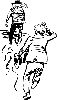 Они продолжали свой кросс. Огромная шевелюра Бобо развевалась, а заплата на его штанах, трепещущая, точно клапан кузнечного меха, подмигивала Джерри, как веселый огонь маяка. — Я не выдержу такой скорости, — воскликнул наконец Джерри. Бобо замедлил шаги и посмотрел на запыхавшегося товарища. — Скоро мы будем на месте, — спокойно сказал он. — Тут близко: еще каких-нибудь два блошиных скачка. Бобо остановился у шикарного кинотеатра и вежливым жестом пригласил: — Входите, пожалуйста. Дверь автоматически отворилась, и друзья вошли в просторное фойе, где у стен стояли удобные мягкие диваны. — Отдохнем минуточку здесь и пойдем дальше, — беспечно сказал Бобо, бросаясь на диван. Джерри последовал его примеру и закрыл на мгновение глаза. Ему показалось, что он куда-то проваливается, но тут Бобо толкнул его легонько в бок и весело сказал: — Ну-ка, лизни! По лицу Джерри расползлась блаженная улыбка. Он лизнул склейку самокрутки и радостно воскликнул: — Какой аромат! |