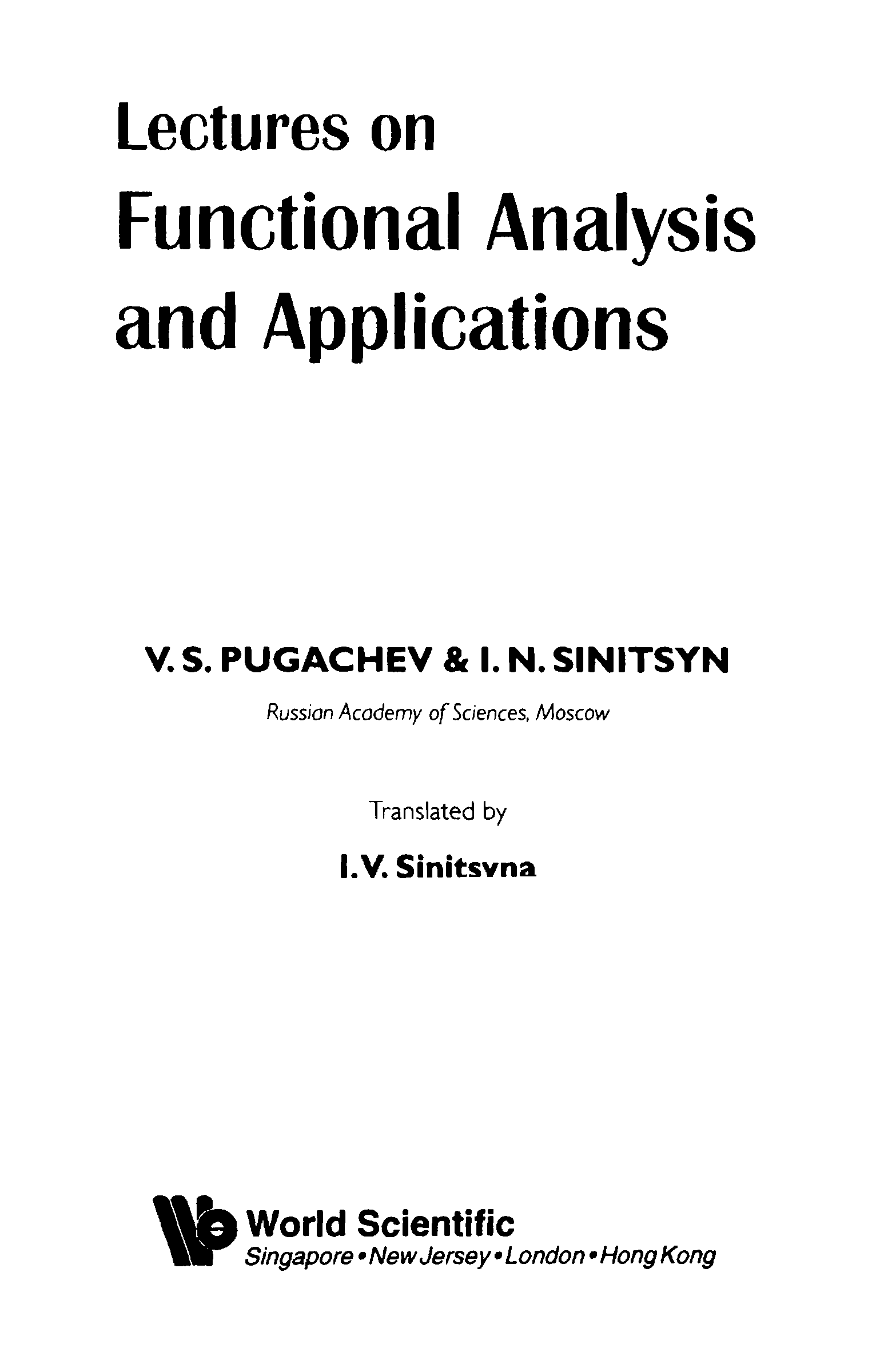 "Lectures on Functional Analysis and Applications" - читать интересную книгу автора (V. S. Pugachev, I. N. Sinitsyn) |