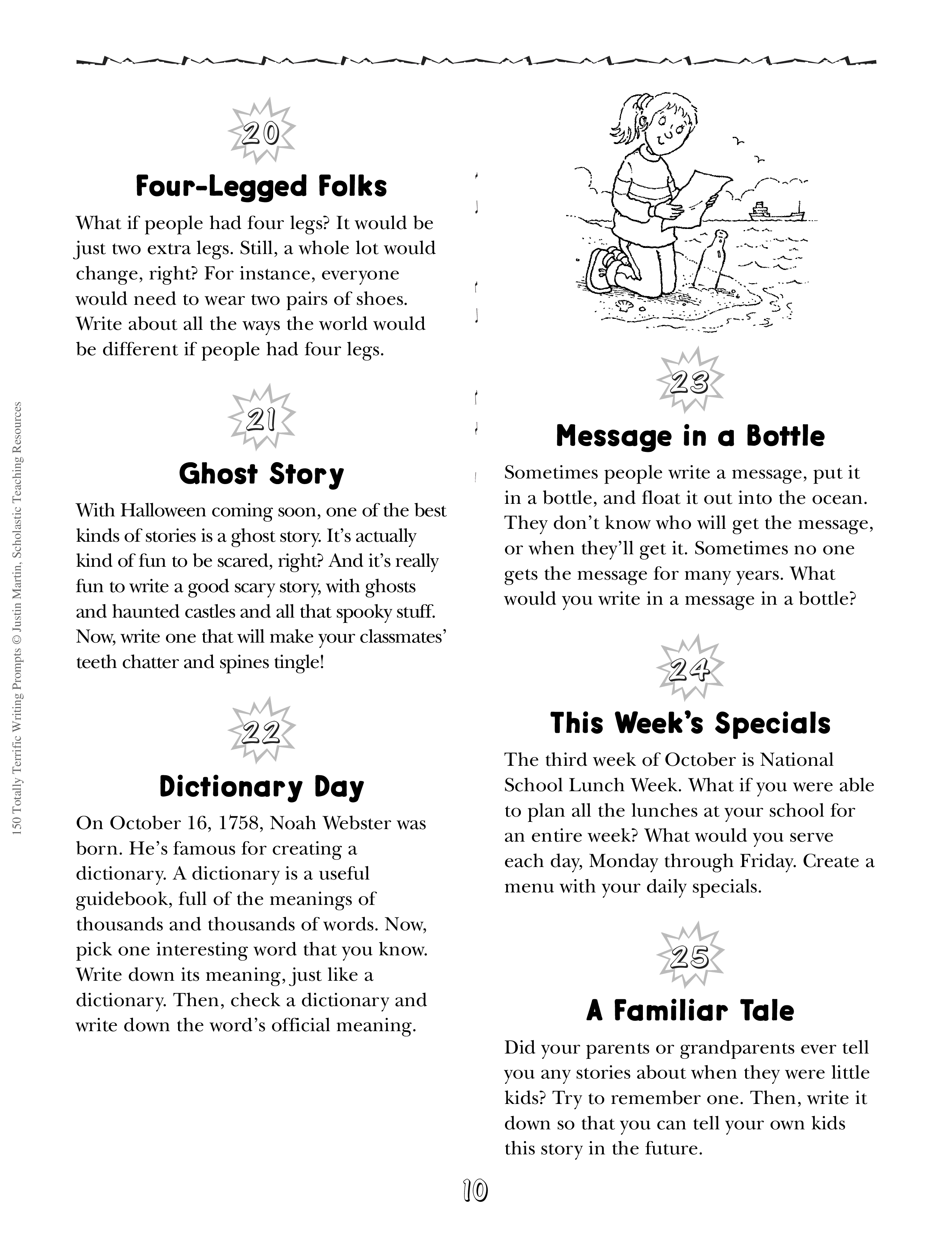 "150 Totally Terrific Writing Prompts: Lively, Fun Prompts to Motivate Every Writer in Your Class" - читать интересную книгу автора (Justin Martin) |