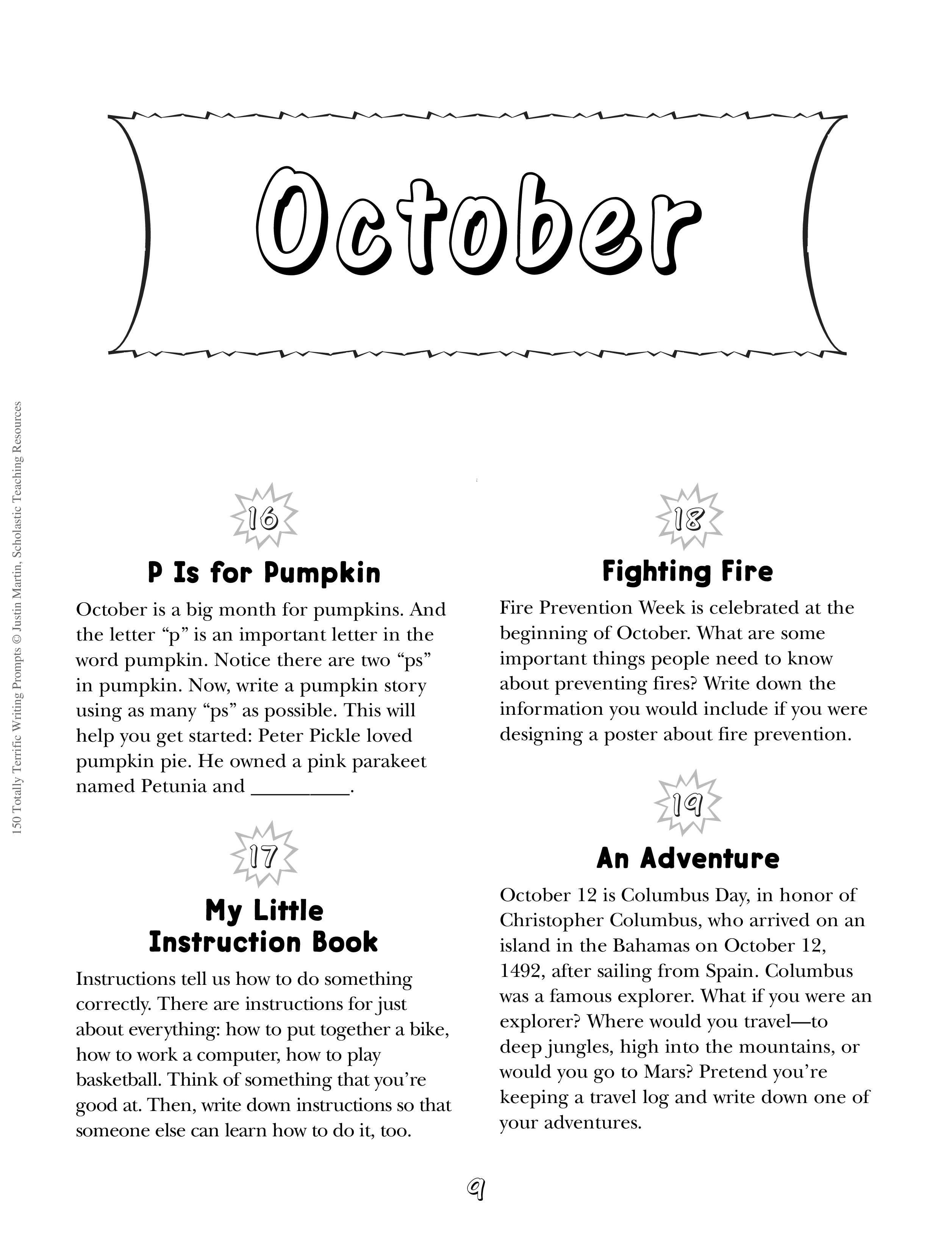"150 Totally Terrific Writing Prompts: Lively, Fun Prompts to Motivate Every Writer in Your Class" - читать интересную книгу автора (Justin Martin) |