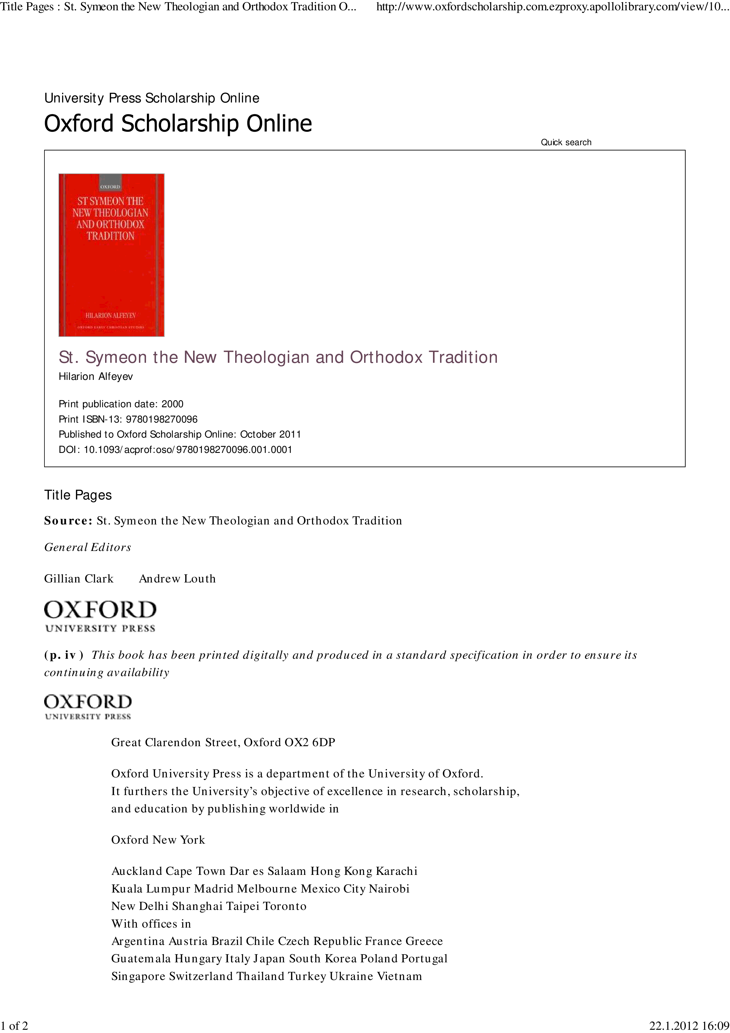 "Saint Symeon, the new theologian, and Orthodox tradition" - читать интересную книгу автора (Ilarion (Hieromonk.), Hilarion Alfeyev) |