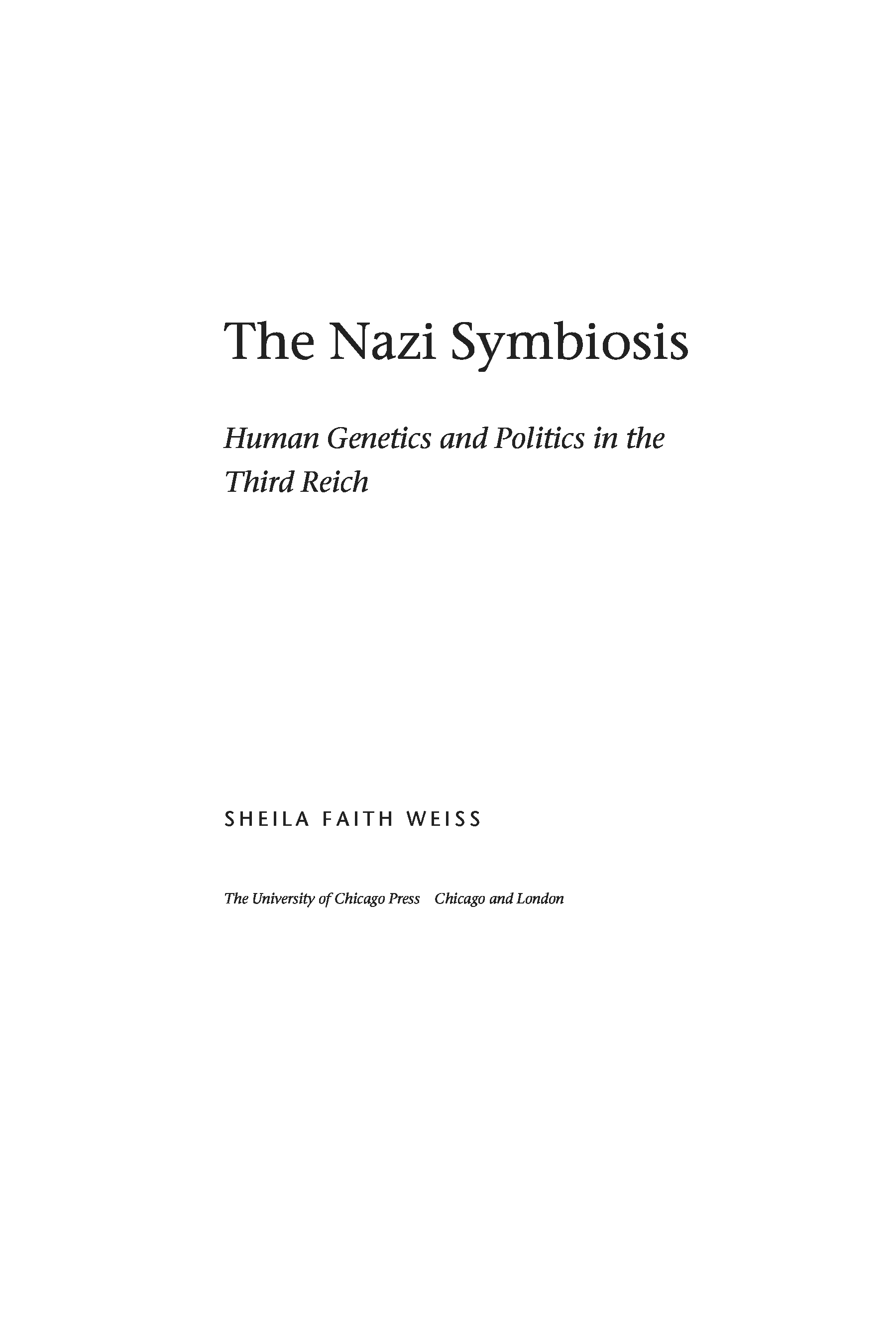 "The Nazi Symbiosis: Human Genetics and Politics in the Third Reich" - читать интересную книгу автора (Sheila Faith Weiss) |