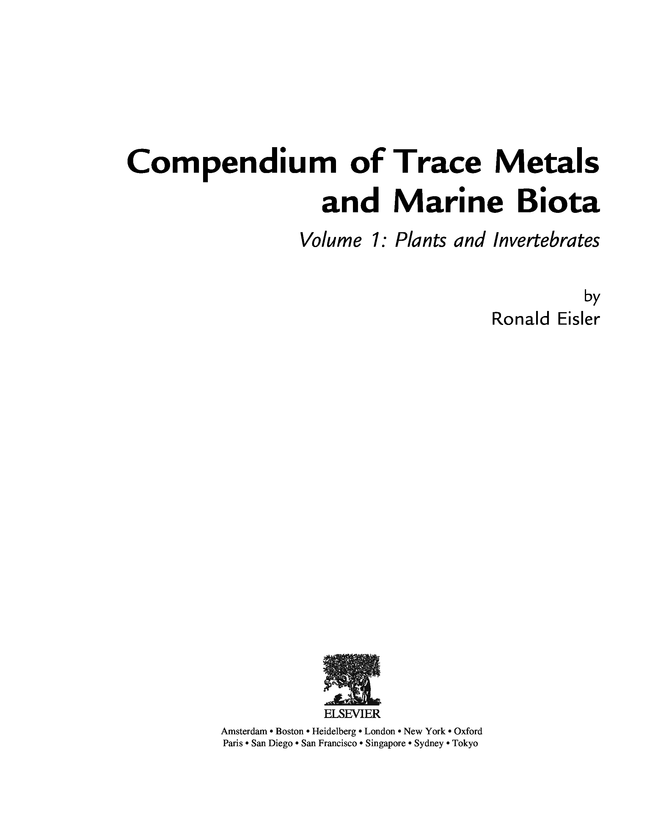 "Compendium of Trace Metals and Marine Biota: Vol 1: Plants and Invertebrates Vol 2: Vertebrates" - читать интересную книгу автора (Ronald Eisler) |
