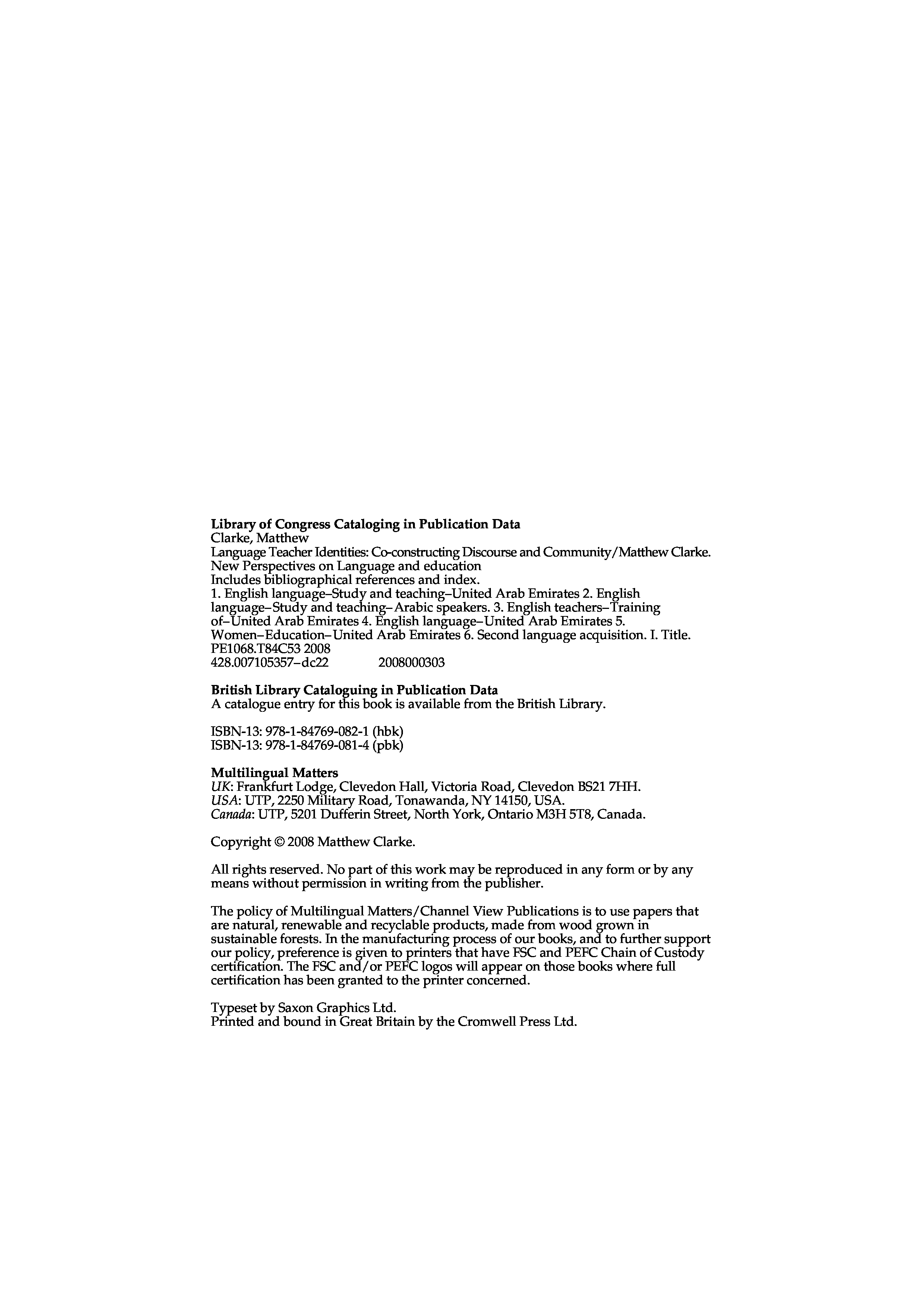 "Language Teacher Identities: Co-constructing Discourse and Community (New Perspectives on Language and Education)" - читать интересную книгу автора (Matthew Clarke) |