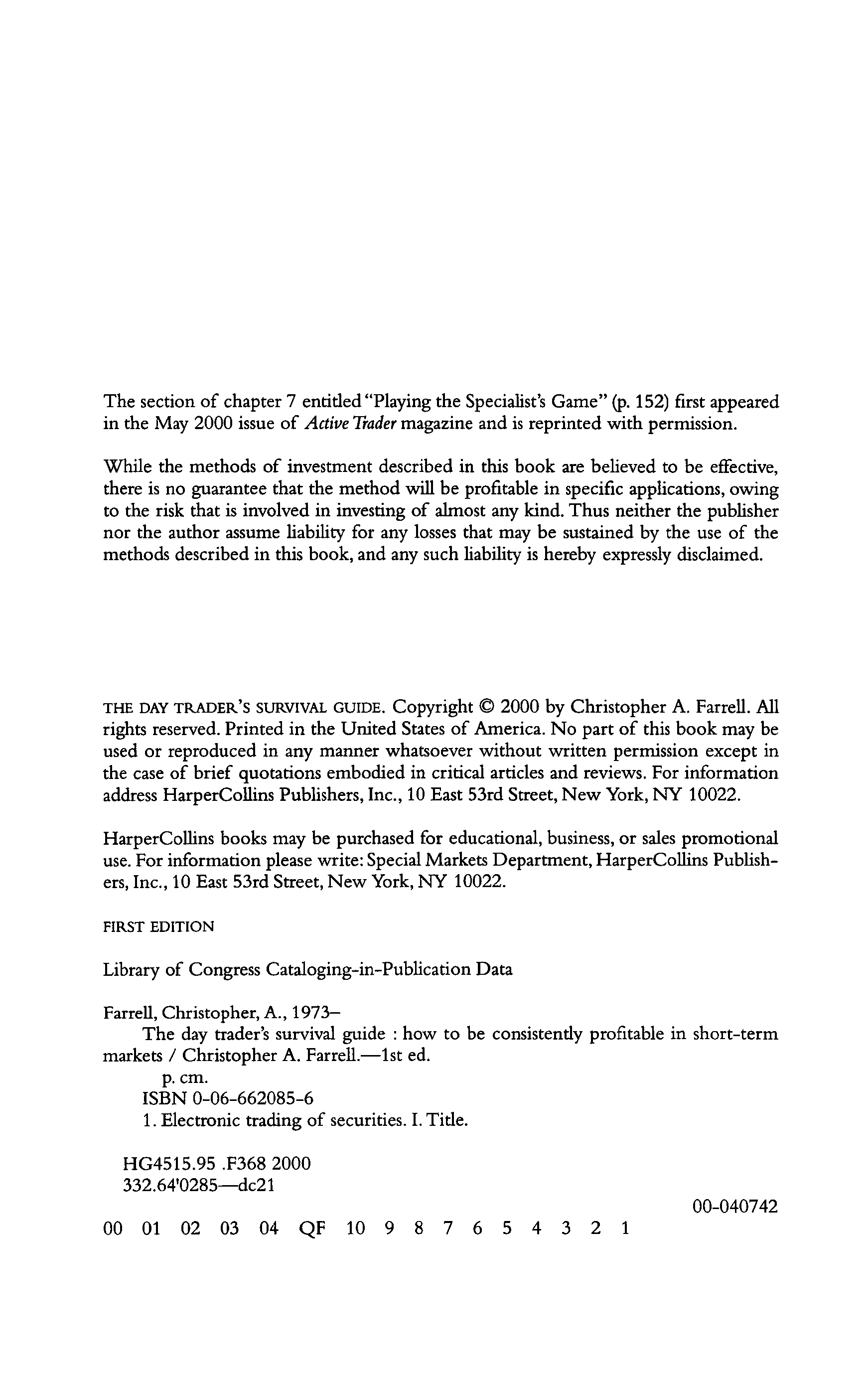 "The Day Trader's Survival Guide: How to Be Consistently Profitable in Short-Term Markets" - читать интересную книгу автора (Christopher A. Farrell)
