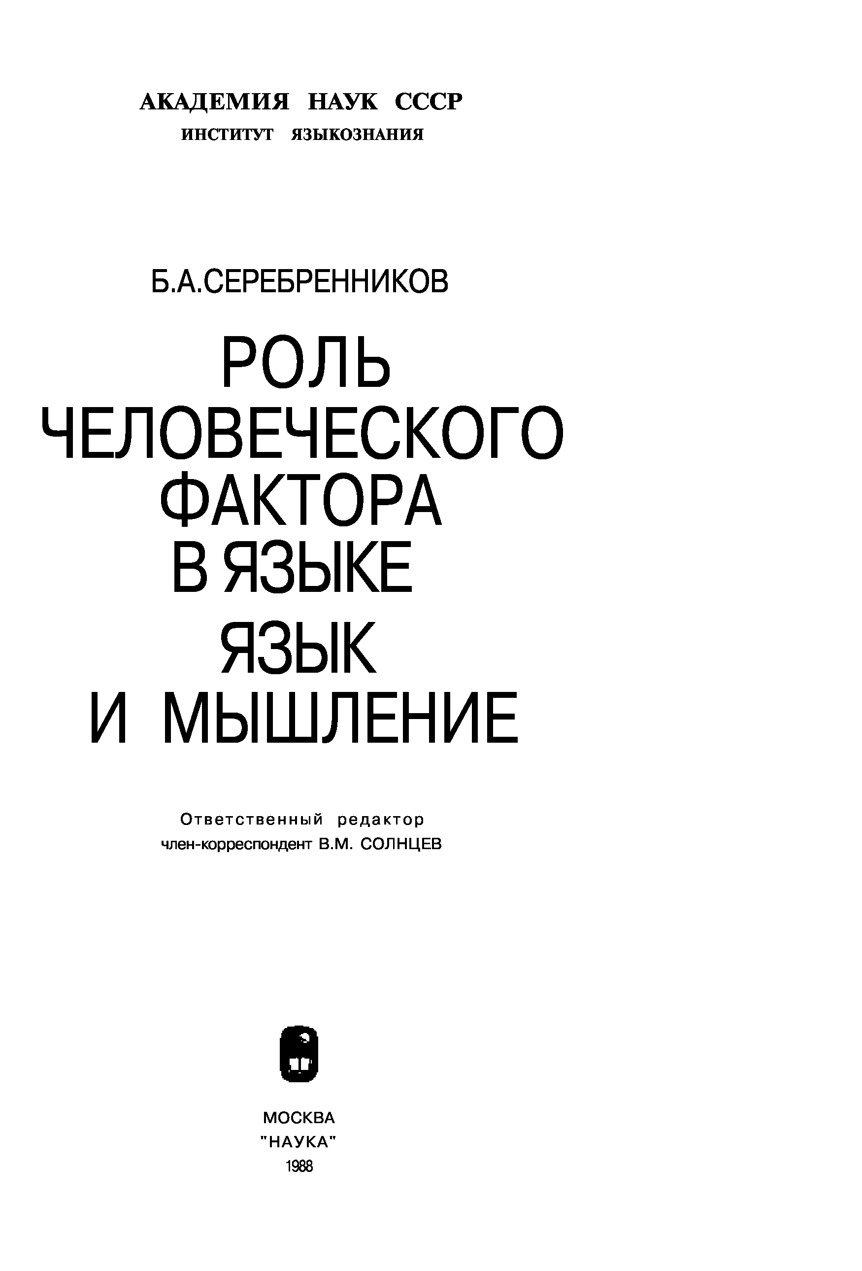 "Роль человеческого фактора в языке: Язык и мышление." - читать интересную книгу автора (Серебренников Б.А.)