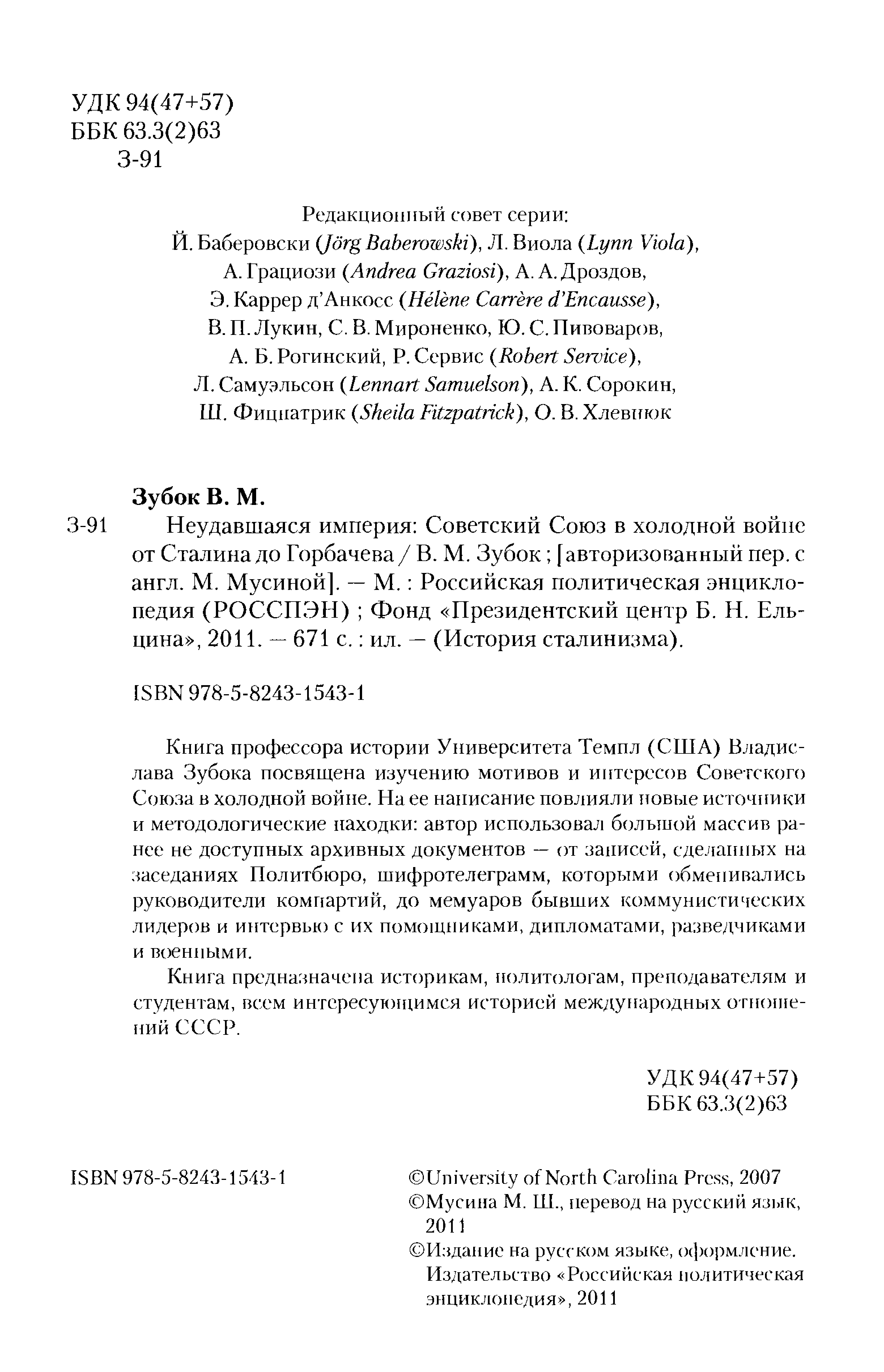 "Неудавшаяся империя: Советский Союз в холодной войне от Сталина до Горбачева" - читать интересную книгу автора (Зубок Владислав Мартинович)