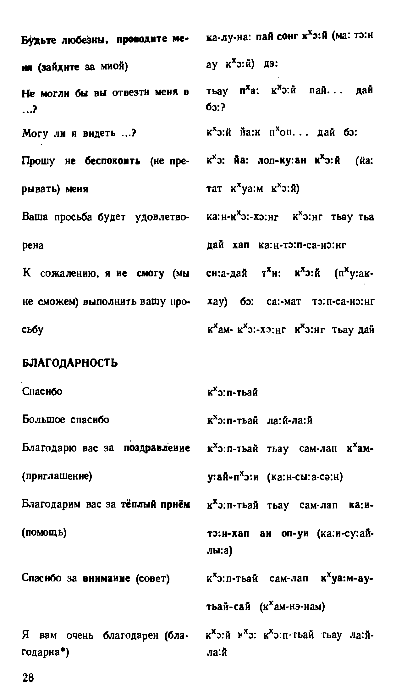 "Русско-лаосский и лаосско-русский разговорник" - читать интересную книгу автора (Соболева В. С, Плам Ю. Я., Чантхависук В. и др.) |