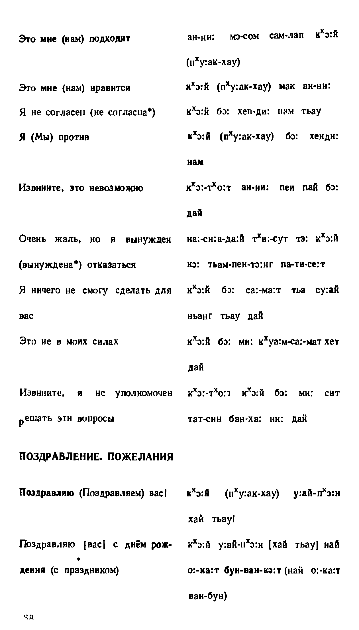 "Русско-лаосский и лаосско-русский разговорник" - читать интересную книгу автора (Соболева В. С, Плам Ю. Я., Чантхависук В. и др.) |