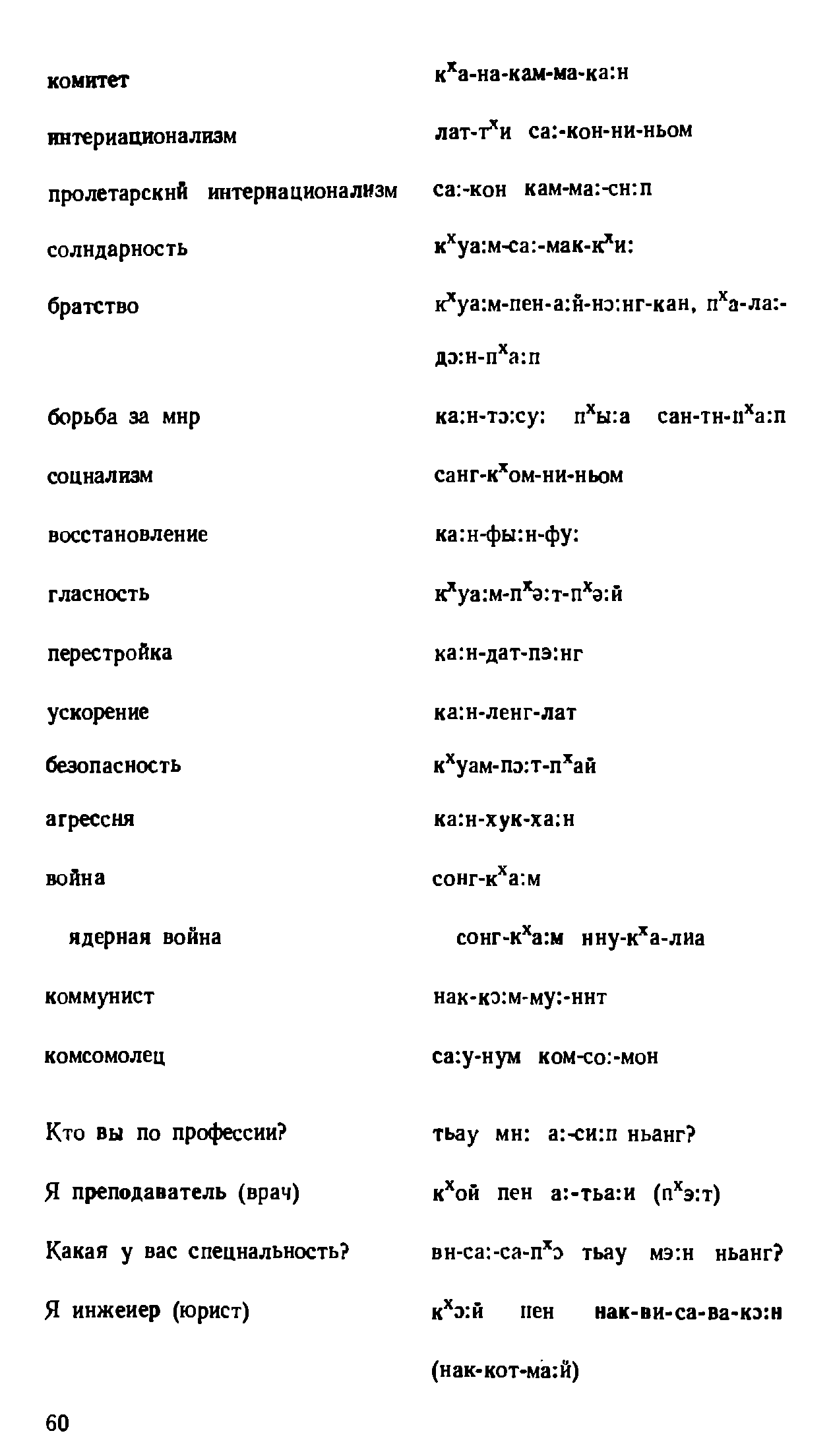 "Русско-лаосский и лаосско-русский разговорник" - читать интересную книгу автора (Соболева В. С, Плам Ю. Я., Чантхависук В. и др.) |