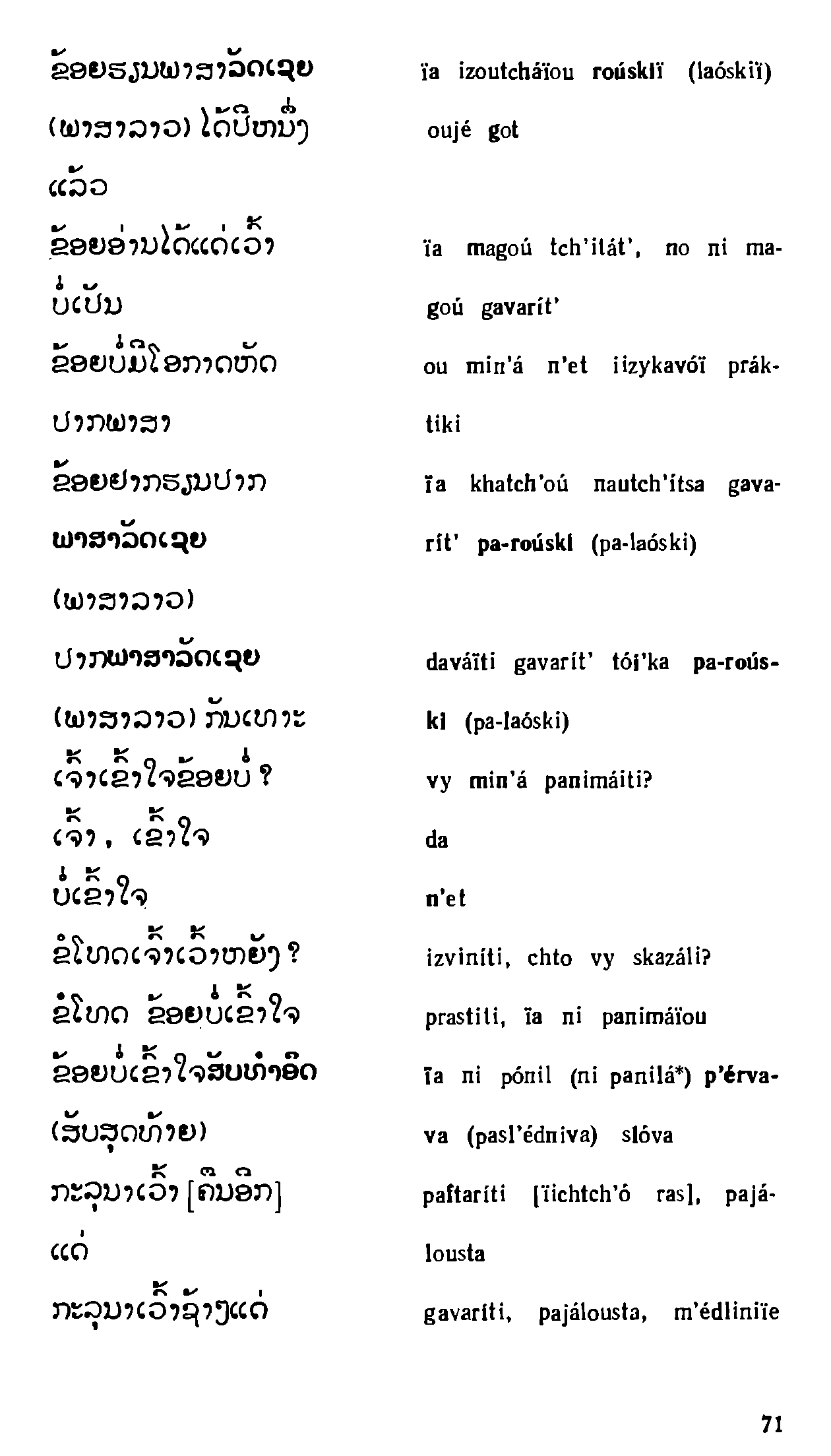 "Русско-лаосский и лаосско-русский разговорник" - читать интересную книгу автора (Соболева В. С, Плам Ю. Я., Чантхависук В. и др.) |
