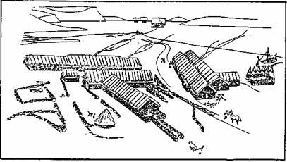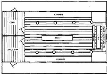 "Тигры моря. Введение в викингологию" - читать интересную книгу автора (Будур Наталия)НОРМАННСКАЯ УСАДЬБАБлагодаря археологическим раскопкам, мы знаем, как выглядели усадьбы в средневековой Скандинавии. В то время королевский двор мало чем отличался от усадеб богатых людей — в основном, лишь размерами домов. Самой известной сохранившейся до наших дней викингской усадьбой считается хутор Стенг в Исландии, прозванный также «исландской Помпеей», поскольку был похоронен под слоем пепла и лавы в 1104 году во время извержения Геклы. Люди, к счастью, успели покинуть усадьбу. В Норвегии, Дании и Швеции жилища строили из дерева, а вот в Исландии и Гренландии, где почти не было лесов, дома складывали из камня и дерна.