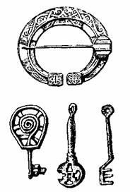 Для женщин в усадьбе строили особый дом, где хозяйка с дочерьми и прислугой занимались работой. Однако очень часто ткацкий стан стоял в главном доме. Одежду шили из домотканой материи, но иногда и из тканей, которую привозили викинги. Женщины были одеты в свободное платье-рубаху с длинными широкими рукавами, а сверху надевалось верхнее платье-сарафан с незашитыми боками, бретели которого закреплялись на плечах парными фибулами-брошами, а на талии такой сарафан иногда перехватывался поясом. В те времена еще не знали пуговиц и в качестве застежек использовался различные булавки, пряжки и броши. Во многих домах одежду каждое утро зашивали у ворота и рукавов. Среди норманнских женщин особенно были распространены скорлупообразные, кольцевидные и трехлепестковые фибулы. На плечи обычно набрасывалась шаль, заколотая особой брошью — сёлье. Замужние женщины покрывали голову платком. Мужчины одевались в короткую тунику, облегающие штаны и плащ, который закреплялся фибулой на правом плече, чтобы не стеснять движений в бою и иметь возможность в любой момент беспрепятственно обнажить меч. На ногах у норманнов были башмаки из мягкой кожи, которые завязывались ремнями на икрах. Викинги были где-то в среднем на 10 сантиметров ниже современных людей. Женщины занимали особое положение в норманнском обществе. Она оставалась главным человеком в усадьбе, когда муж отправлялся в викингский поход.