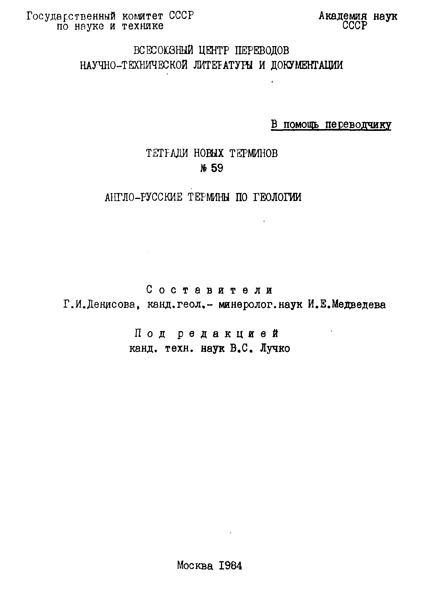 "Англо-русские термины по геологии." - читать интересную книгу автора ( Составители Г.И.Денисова, И.Е.Медведева. Под...)