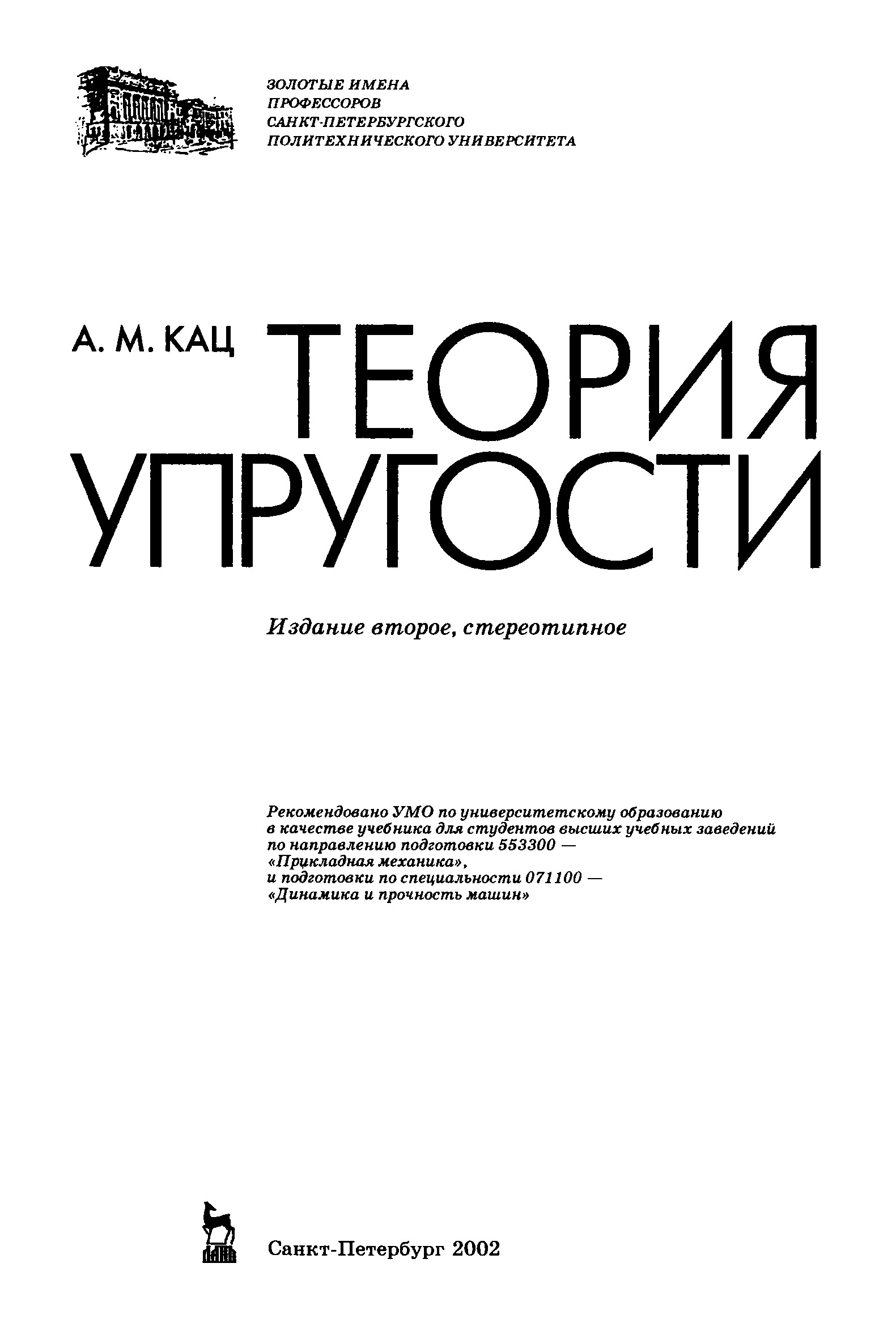"Теория упругости" - читать интересную книгу автора (Кац А.М.)