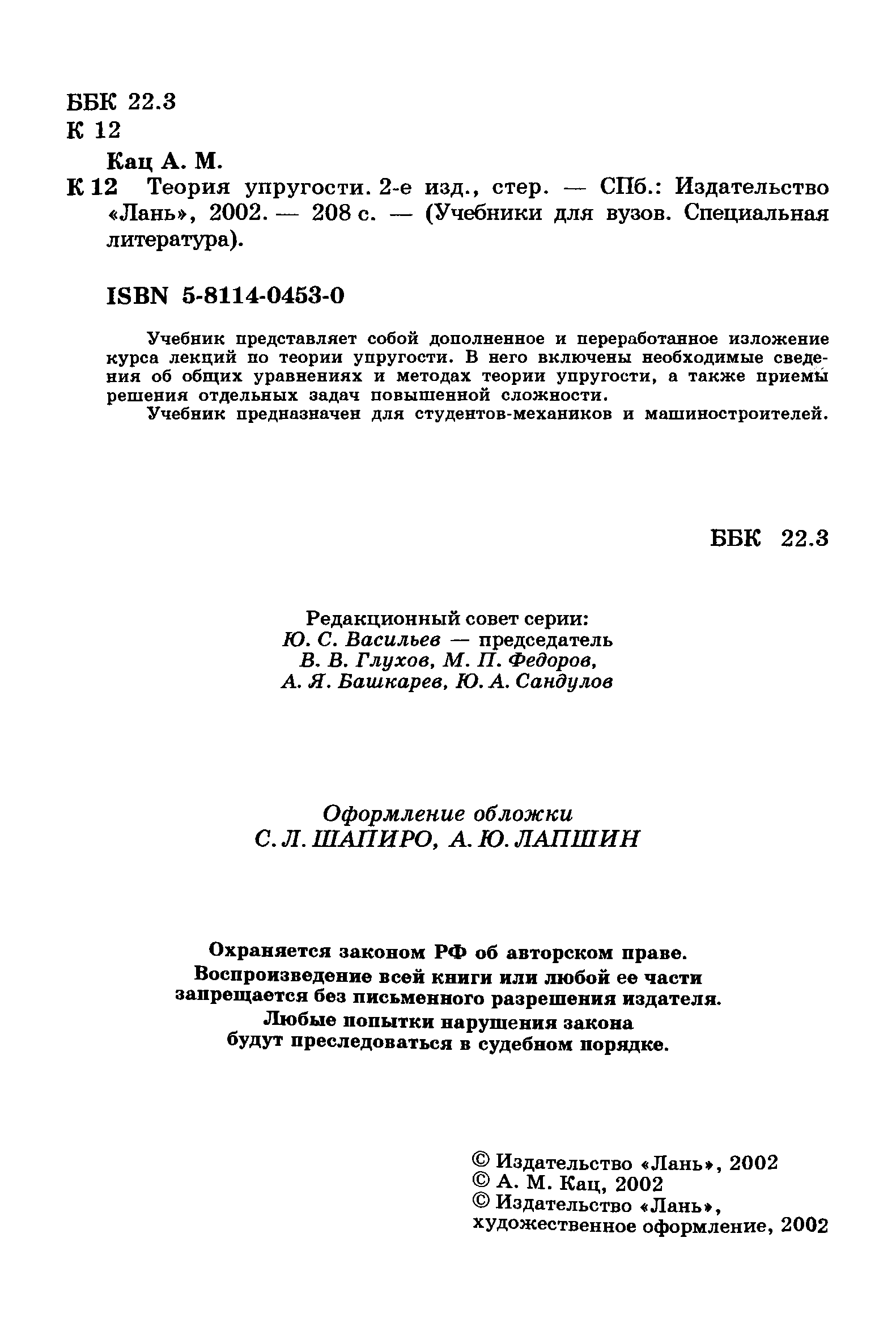 "Теория упругости" - читать интересную книгу автора