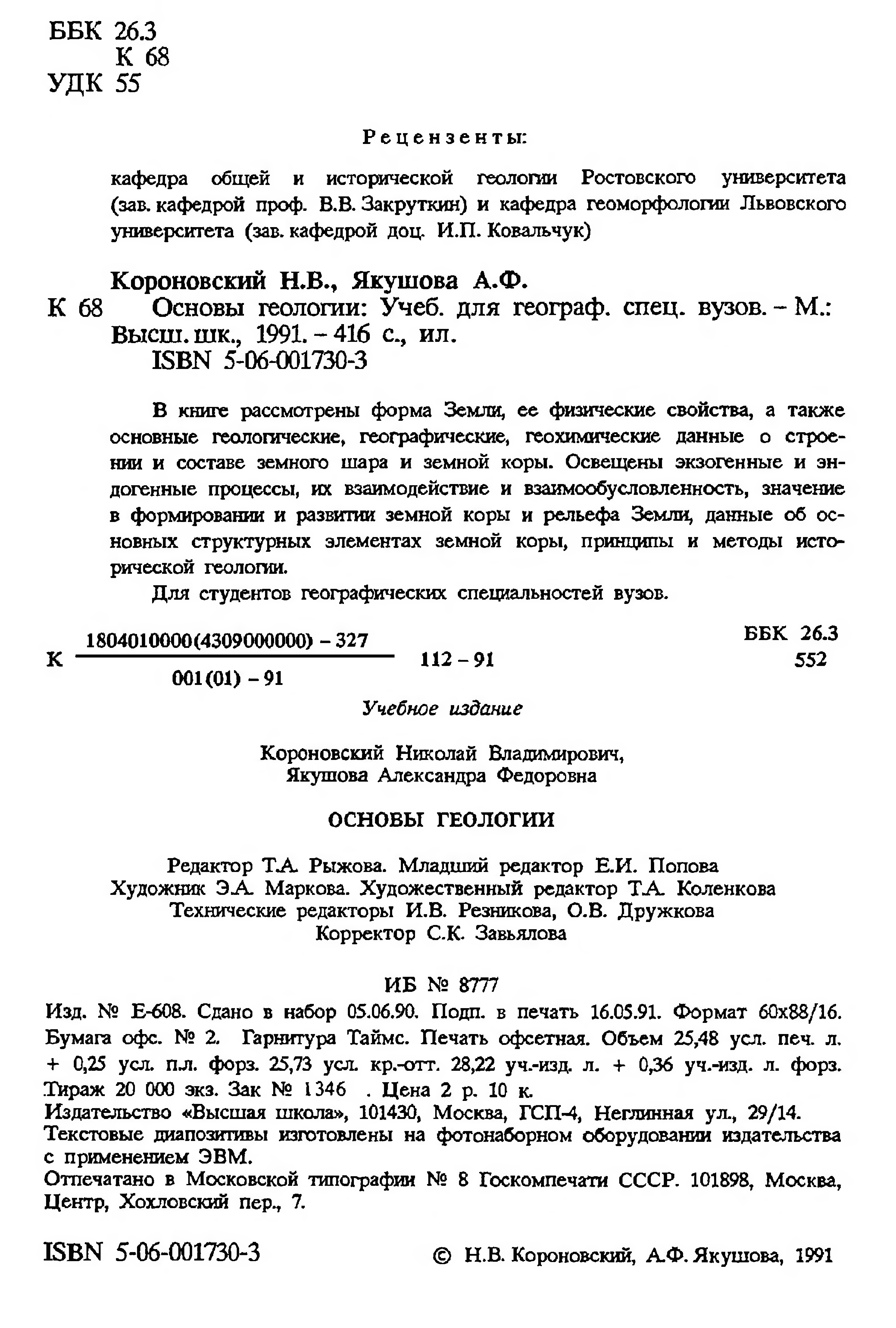 "Основы геологии. " - читать интересную книгу автора (Якушова А.Ф., Короновский Н.В.)