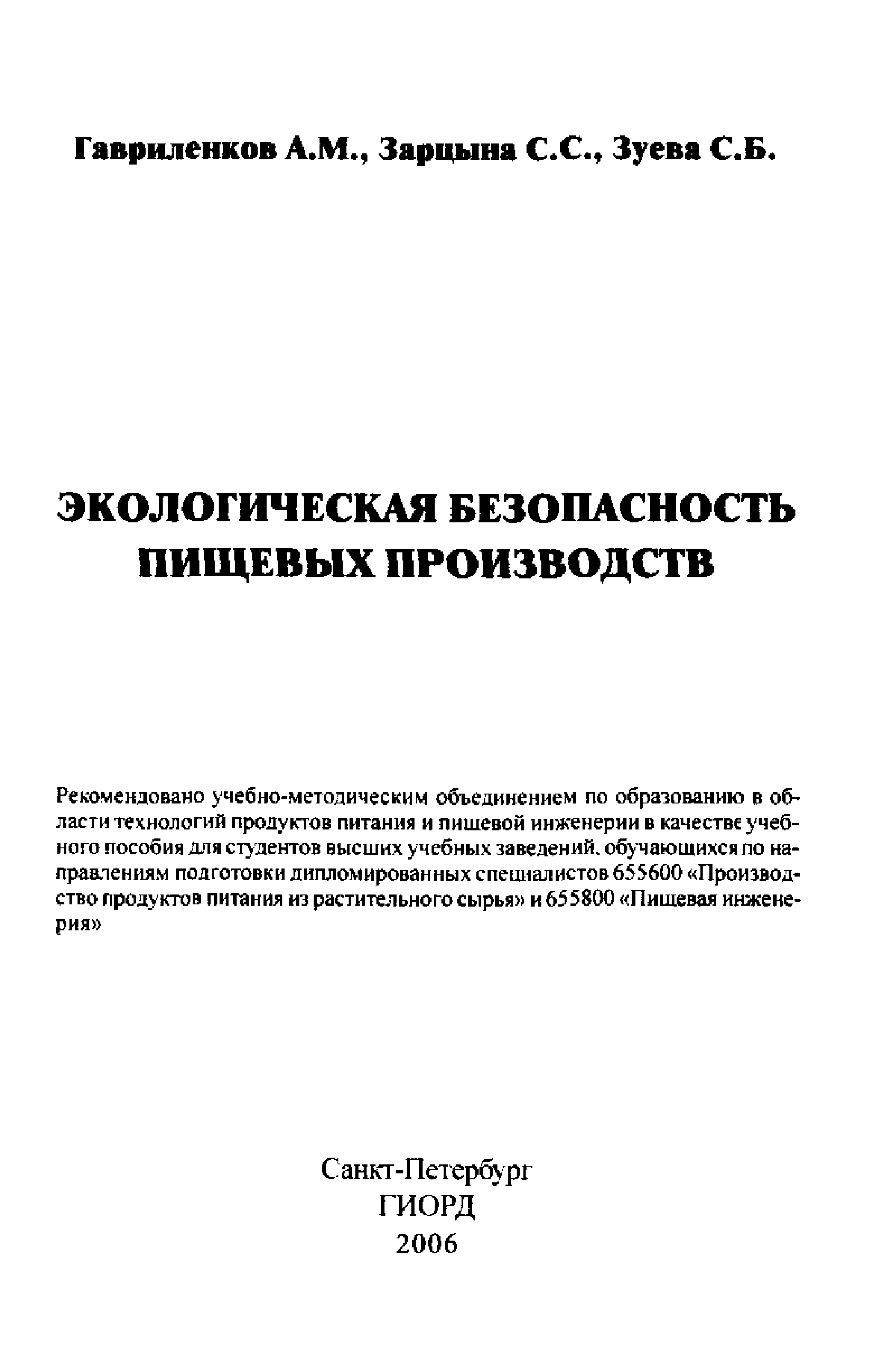 "Экологическая безопасность пищевых производств. " - читать интересную книгу автора (А. М. Гавриленков, С. С. Зарцына, С. Б. Зуева)