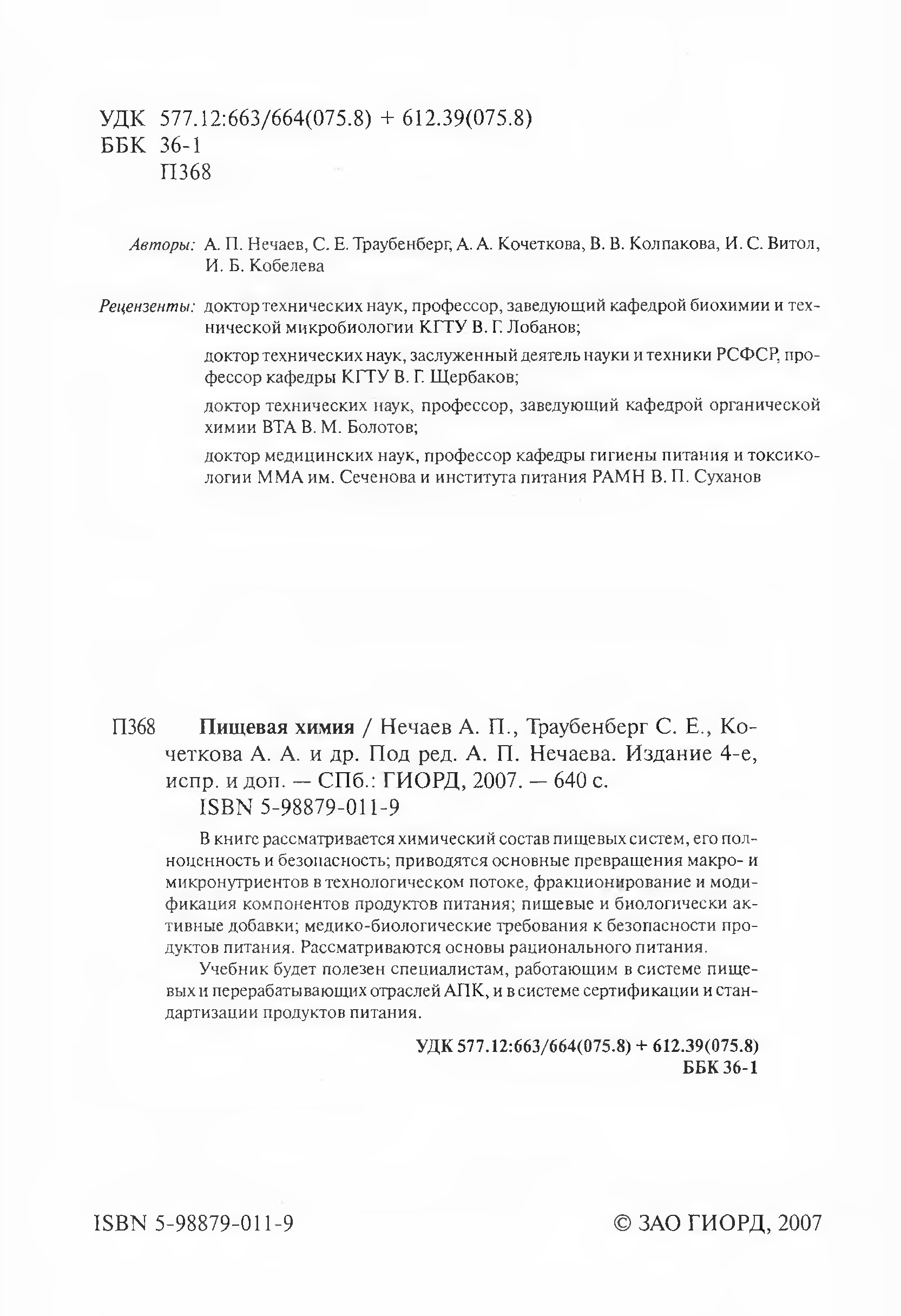 "Пищевая химия. " - читать интересную книгу автора (Нечаев А.П., Траубенберг С.Е., Кочеткова А.А. и...)