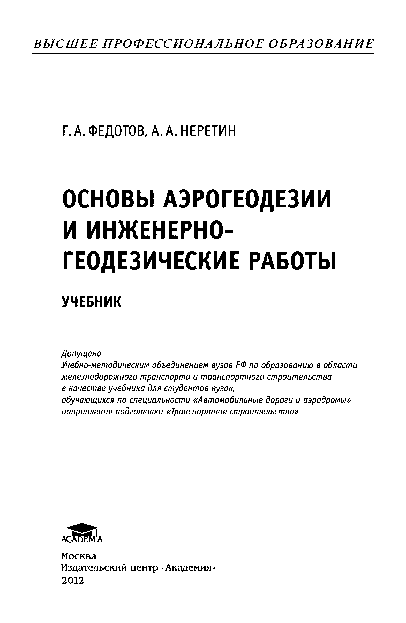 "Основы аэрогеодезии и инженерно-геодезические работы" - читать интересную книгу автора (Федотов Г.А., Неретин А.А. )