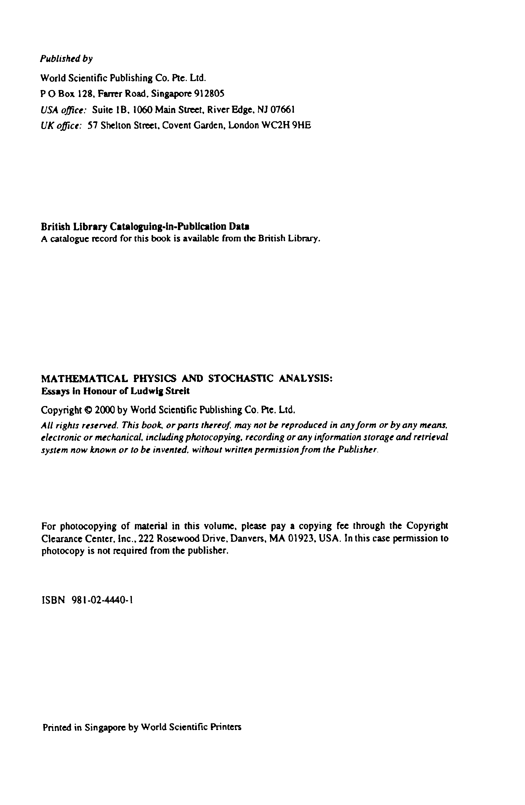 "Mathematical physics and stochastic analysis : essays in honour of Ludwig Streit" - читать интересную книгу автора (Sergio Albeverio; Ludwig Streit; et al (eds.))