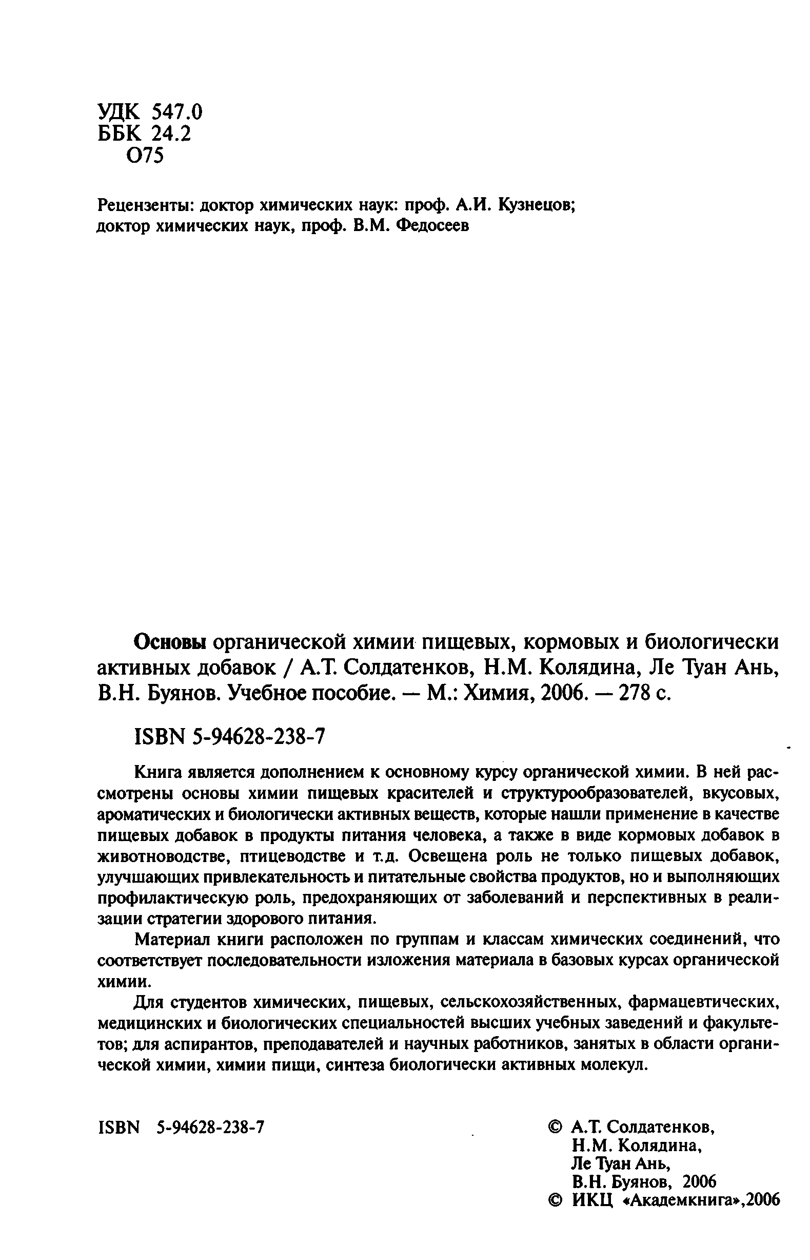 "Основы органической химии пищевых, кормовых и биологически активных добавок" - читать интересную книгу автора ( А. Т. Солдатенков, Н. М. Колядина, Ле Туан Ань,...) |
