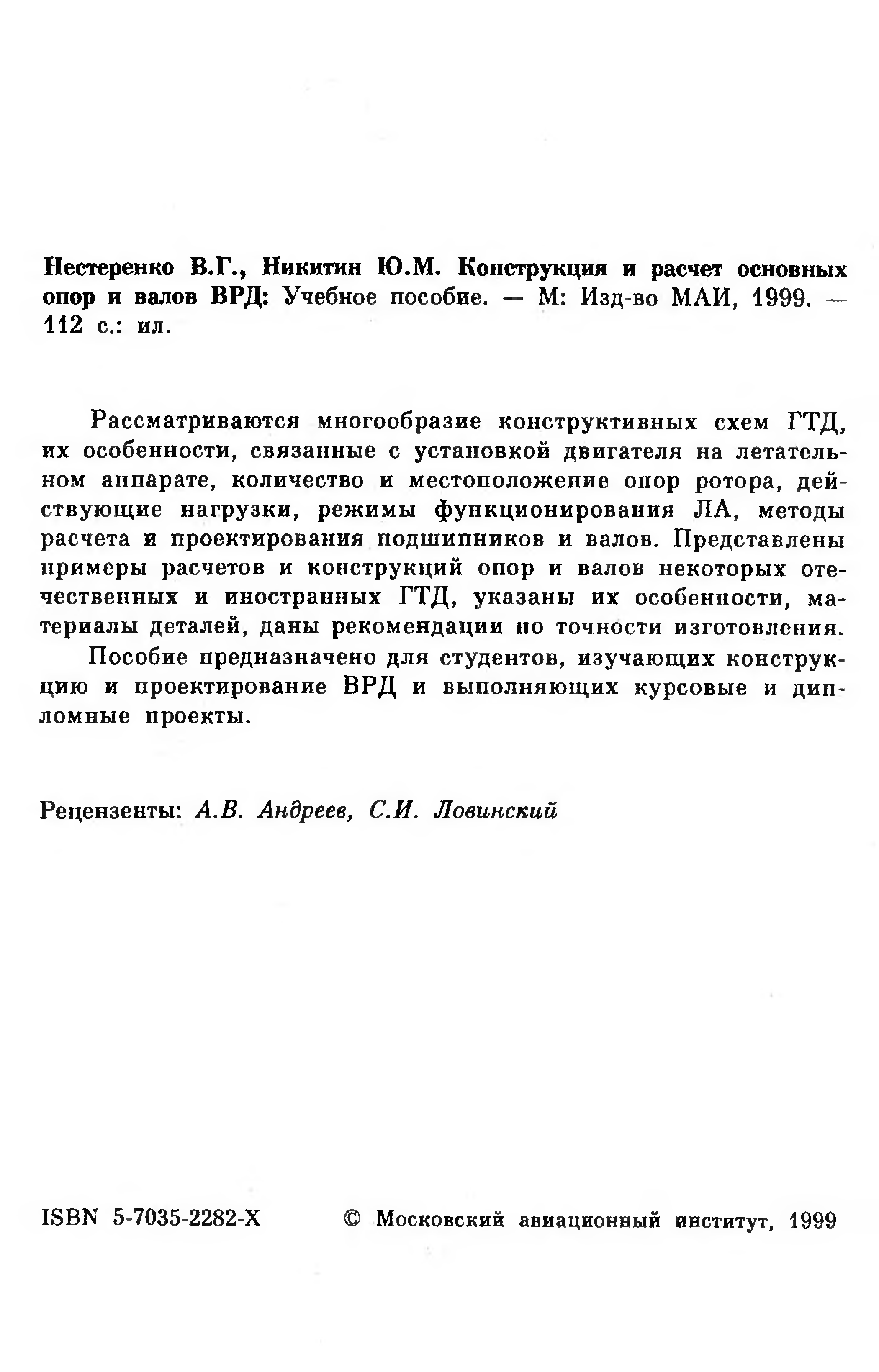 "Конструкция и расчет основных опор и валов ВРД : Учеб. пособие" - читать интересную книгу автора (Нестеренко, Валерий Григорьевич;Никитин,...) |