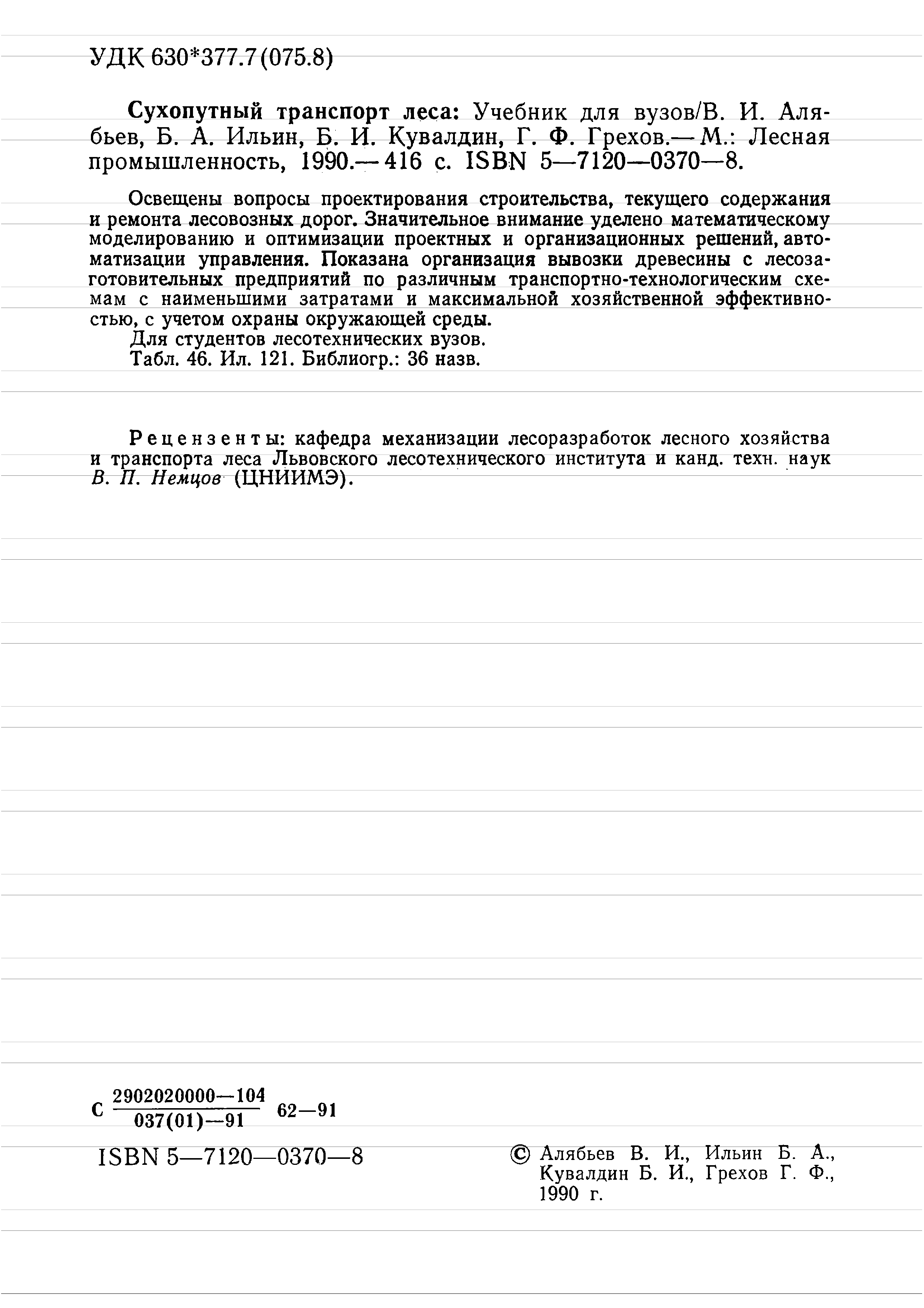"Сухопутный транспорт леса (Учеб. для вузов по спец. "Лесоинж. дело")" - читать интересную книгу автора (Алябьев В. И., Грехов Г. Ф., Ильин Б. А.,...) |