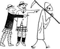 У шотландцев, несомненно, особый взгляд на мир. Этот удивительный народ – которым я не перестаю восхищаться – испокон веков предпочитал дневному свету тьму, бестрепетно ждал дня Страшного суда и не терял своей мрачной веселости даже перед лицом смерти. Из всех наций только шотландцы не побоялись превратить дьявола – под разными прозвищами, вроде Старина Ник – в доброго знакомого, не лишенного своеобразного обаяния. Несомненно, в их юморе есть что-то от примитивного мироощущения наших диких предков. Для первобытных людей, достаточно часто видевших смерть собственными глазами, для которых загробный мир был как бы живой реальностью, ощутимой во тьме ночного леса или в реве бури, для них – наших далеких предков – не было ничего естественнее, как попытаться взять страх в полон, завязав веселое, бесшабашное знакомство с пугающими их силами неведомого. Шотландский обычай бдения и веселой церемонии у тела усопшего возвращает нас к младенческой поре человечества, когда бедный дикарь, ошеломленный свалившимся на него несчастьем, пытался делать вид, будто умерший продолжает жить. Наши похороны с их обязательным трауром и тщательно разработанным ритуалом прямо происходят от веселых пирушек прошлого, а наш гробовщик – не что иное, как потомок веселого церемониймейстера, распоряжавшегося похоронными плясками. Со временем похоронные церемонии и траурные одежды видоизменялись, и нарочитое веселье уступило место черному катафалку и мрачным плакальщикам, шагающим за гробом, которые и призваны олицетворять холодное достоинство нашей скорби.