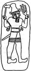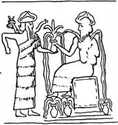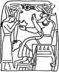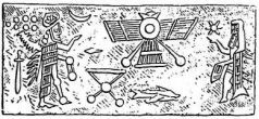 Однако, как свидетельствуют древние тексты, расчёты оказались неверными. Добыча золота была гораздо ниже ожидаемой, и в помощь первой группе на Землю прибыли ещё астронавты – рядовых членов экспедиции называли аннунаками («те, кто спустился с небес на землю»). Они прибывали группами по пятьдесят колонистов, и одну из них возглавлял первенец Энки МАР.ДУК. В одном из древних текстов приводится сообщение Мардука, отправленное отцу: на пути к Земле едва не произошла катастрофа. Пролетая мимо большой планеты Солнечной системы (вероятно, это был Юпитер), космический флот аннунаков с трудом избежал столкновения с одним из спутников планеты. При этом был потерян один корабль, и погибли пятьдесят аннунаков. Сцена на одной из шумерских цилиндрических печатей (рис. 21) вполне может изображать Господина Земли (слева), взволнованно приветствующего сына, одетого в скафандр астронавта (справа), когда его космический корабль покидает Марс (шестиконечная звезда) и приближается к Земле (седьмая планета, если начинать отсчёт с внешних, обозначенная семью точками и изображённая рядом с Луной). На родной планете аннунаков, где правителем был отец Энки АН (или Ану, как произносится это имя на аккадском языке), с волнением и надеждой следили за успехами экспедиции. Дело двигалось медленно, и нетерпение вскоре сменилось разочарованием. Стало очевидно, что план извлечения золота из морской воды с помощью процесса, сходного с лабораторным, оказался неэффективным. Но потребность в золоте не исчезла, и перед аннунаками встала серьёзная дилемма: либо отказаться от самого проекта – но об этом не могло быть и речи – либо попытаться добывать золото другим способом, в рудниках. К тому времени аннунаки уже выяснили, что богатые золотоносные жилы находятся в АБ.ЗУ («первозданный источник»), на Африканском континенте. (В современных семитских языках, основой которых послужил шумерский, слово Осуществлению этого плана мешала одна серьёзная проблема. Африканское золото нужно было извлекать из глубин земли, построив для этого шахты. Решение отказаться от сложного технологического процесса извлечения золота из морской воды в пользу тяжёлого труда в подземных рудниках далось аннунакам непросто. Новый проект требовал увеличения численности аннунаков, основания новой колонии в «месте сияющих жил», расширения базы в Месопотамии, а также создания флота для перевозки руды (МА.ГУР УР.НУ АБ.ЗУ – «суда для руд Абзу») из Африки к берегам Персидского залива. По силам ли Энки одному управлять всем этим сложным хозяйством?