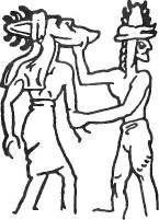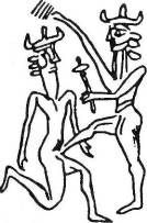 По свидетельству древнего текста, именно тогда был осуществлён первый полет к Земле. Вполне возможно, что о Земле и её ресурсах на Нибиру знали ещё до полёта Алалу на нашу планету. Однако эта легенда со всей определённостью свидетельствует о том, что космический корабль с обитателями Нибиру на борту побывал на Земле ещё до начала миссии Эа. В шумерском Царском списке указывается, что первого правителя Эриду звали Алулим – это имя могло быть либо ещё одним эпитетом Эа/Энки, либо шумерским вариантом имени Алалу. Не исключено также, что свергнутый Алалу был настолько обеспокоен судьбой Нибиру, что сообщил своему обидчику о присутствии золота в водах Земли. На такую возможность указывает последующее примирение соперников – Ану назначил царским виночерпием Кумарби, внука Алалу. Однако этот жест примирения привёл лишь к тому, что история повторилась. Несмотря на оказанную ему честь, юный Кумарби не мог забыть, что Ану отнял престол у его деда. Со временем враждебность юноши становилась все боле явной, и Ану «выносить не мог взгляда глаз Кумарби». Поэтому Ану, приняв решение посетить Землю и взяв с собой законного наследника Энлиля, посчитал, что ради безопасности нужно включить в состав экспедиции и Кумарби. Оба этих решения – взять Энлиля и Кумарби – привели к новой вспышке вражды и страданиям самого Ану. Энки решительно возражал против намерения Ану привезти на Землю Энлиля и поставить его во главе миссии – об этом мы узнаем из недавно найденных текстов. Разъярённый Энки угрожал покинуть Землю и вернуться на Нибиру. Но кто мог дать гарантию, что он не захватит отцовский трон? В качестве компромисса Ану мог сам остаться на Земле, а Энлиля назначить временным правителем Нибиру. Но уступит ли он трон отцу, когда тот вернётся на родную планету? В конце концов было решено бросить жребий: пусть сама судьба определит, как быть. О разделе сфер влияния повествуют многие шумерские и аккадские тексты. Одна из самых длинных Хроник Земли, поэма под названием «Миф об Атрахасисе», рассказывает о том, как боги бросали жребий и что из этого получилось: Полагая, что ему удалось разделить двух соперничавших братьев, Ану «взмыл в высокое небо. Но в небе Земли события приняли неожиданный оборот. Возможно, из осторожности Кумарби был оставлен на орбитальной станции, вращавшейся вокруг Земли. Когда Ану вернулся на станцию, собираясь отправиться в длительный полет к Нибиру, его встретил разъярённый Кумарби. После резких слов противники пустили в ход кулаки: «стал с Ану сражаться Кумарби, Кумарби, потомок Алалу, стал на небе с Ану сражаться». Когда Кумарби одержал победу в поединке, «из рук его вырвался Ану». Но Кумарби удалось схватить ускользаюшего врага за ноги: «он укусил Ану в ногу, откусил ему силу мужскую». Археологи нашли древние рисунки, иллюстрирующие рассказ об этом поединке (рис. 23а), а также изображающие единоборство аннунаков (рис. 236), у которых удар в область гениталий применялся довольно часто. Униженный и страдающий от боли Ану улетел на Нибиру, оставив Кумарби на орбите вместе с другими астронавтами, обслуживающими орбитальную станцию и космические челноки. Но перед отлётом он наложил на Кумарби проклятие «трёх чудищ в животе».