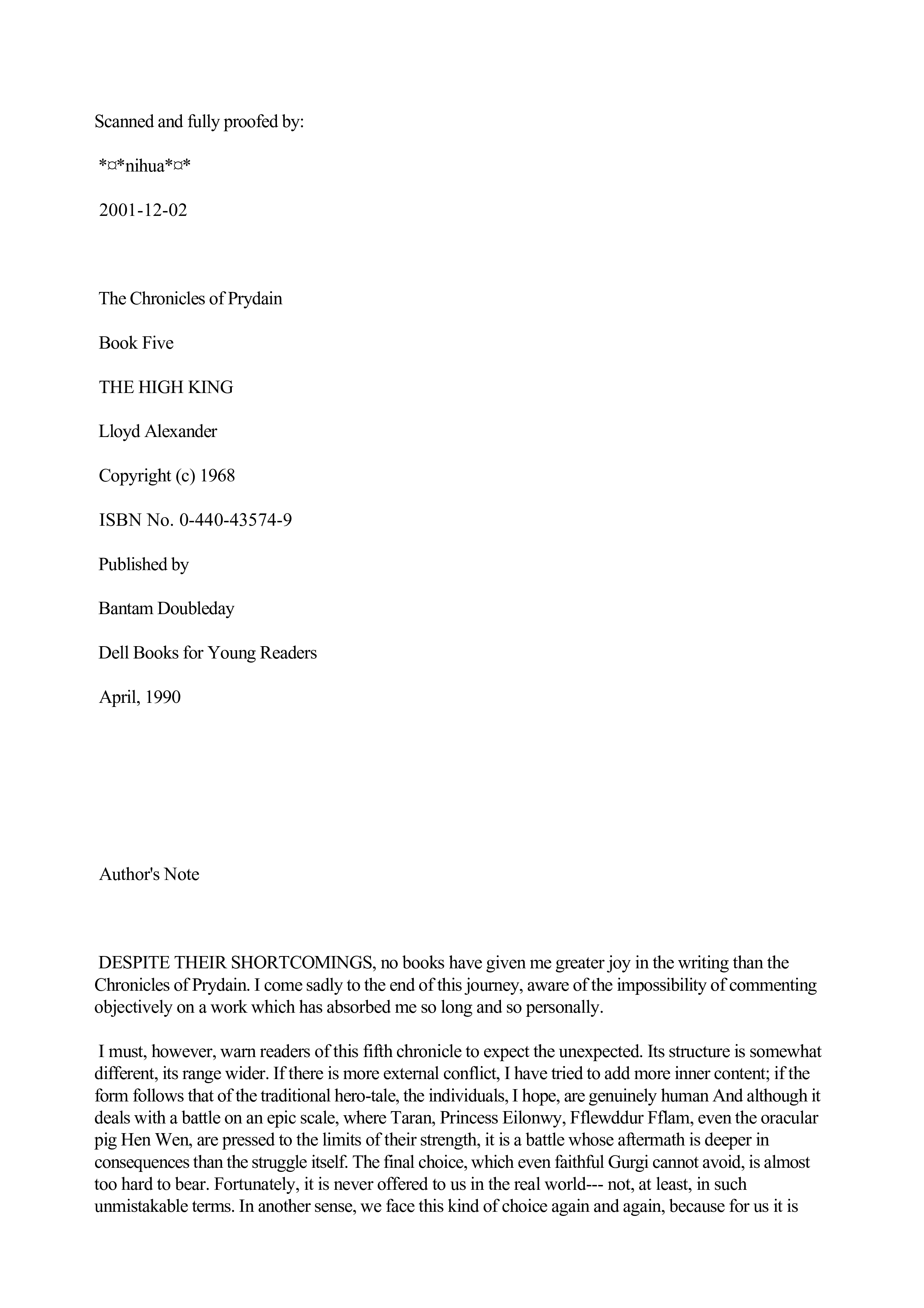 "Alexander, Lloyd - Chronicles of Prydain 5 - The High King" - читать интересную книгу автора (Alexander Lloyd) |