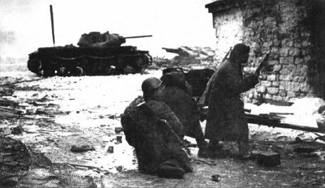 В ночь на 30 августа 1942 года 507 отб применил огнемёты против живой силы противника. Вместе с 70 гв, сп 24 гв. сд батальон получил задачу – уничтожить группу фашистских автоматчиков, просочившихся к отметке 40,4. Танки батальона вышли в атаку двумя группами, применив приём «клещи», открыли огнеметание по живой силе врага. Немецкие солдаты в панике кинулись бежать, срывая обмундирование, головные уборы, бросая оружие. Батальон уничтожил до роты гитлеровцев, 9 ПТО и автомашину с боеприпасами. Пленный солдат Хуберт Майер заявил: «Неожиданно нас осветили длинные языки пламени. Впереди упали мёртвые. На многих загорелось обмундирование. Мы бросились в панике бежать, разбежалась и орудийная прислуга. В районе Торопово противник оказывал сильное сопротивление и не давал возможности продвигаться нашей пехоте. 5 танков 502 отб скрытно подошли к немецким окопам и применили огнемёты. Было сожжено 3 блиндажа, 6 домов и до роты солдат и офицеров». В декабре 1942 года в критический момент контрнаступления крупных танковых соединений противника, стремившихся деблокировать окружённую под Сталинградом группировку, эффективно действовала 235-я отдельная огнемётная танковая бригада, приданная 51-й армии. По мнению начальника химуправления Сталинградского фронта полковника Михайлуса, «бригада решила своим огнемётным вооружением участь контрнаступления противника, уничтожив его двукратно превосходящие силы, и обеспечила дальнейший успех фронтовой операции». В течение 1943 года огнемётные KB применялись при освобождении г. Великие Луки, и особенно успешно на Юго-Западном фронте. |