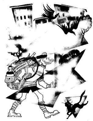 Я повернул направо, прошёл сто шагов — остановки нет и в помине. Пришлось вернуться назад. Я шёл и всё время оглядывался: не нагоняет ли меня автобус? Но ни одной машины сзади не было. Тут я заскучал и начал считать ворон — не в переносном, а в прямом смысле. Ворон было очень много, не помню сколько. Помню только, что число их не делилось на три. А вот когда я это число удвоил, оно сразу на три и разделилось.