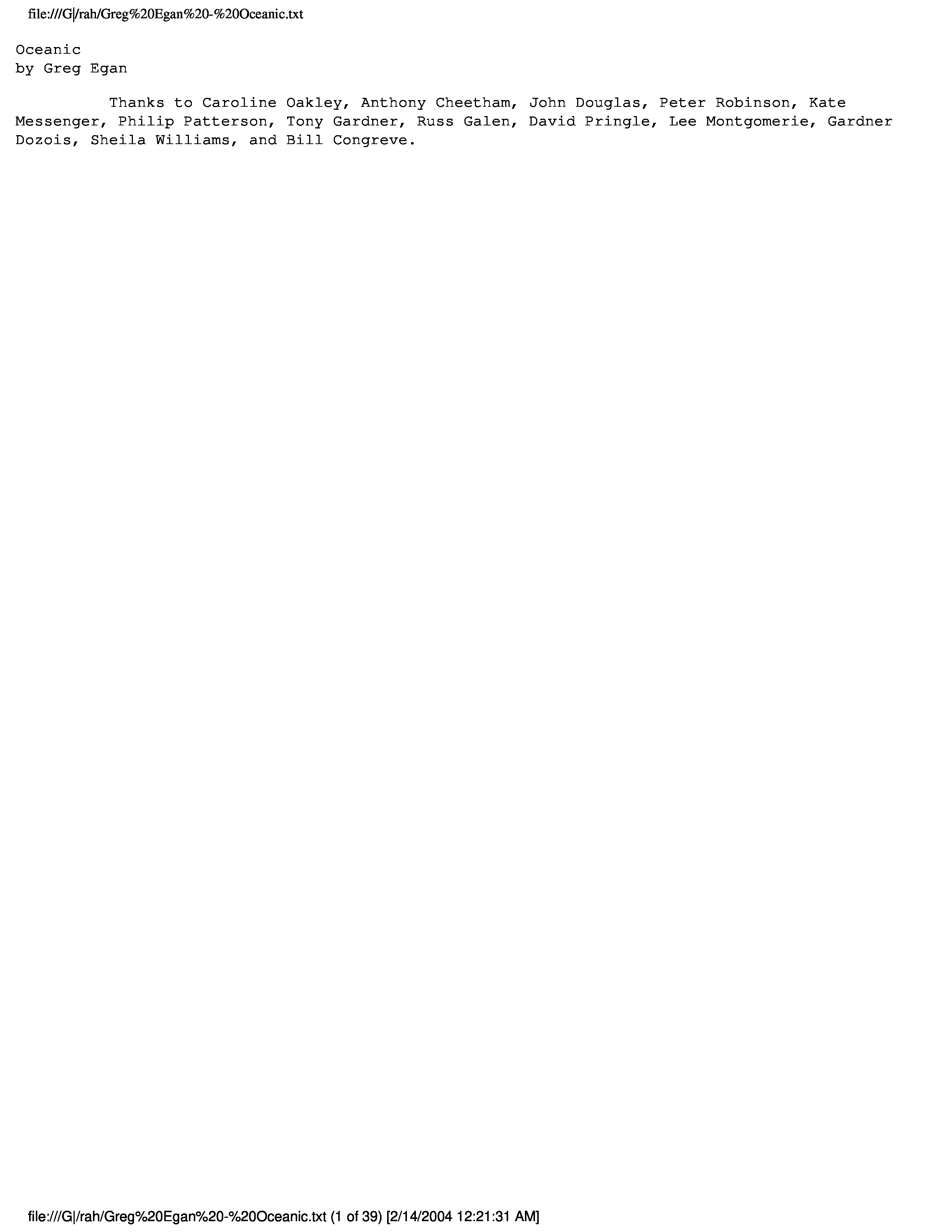 "Egan, Greg - Oceanic" - читать интересную книгу автора (Egan Greg)