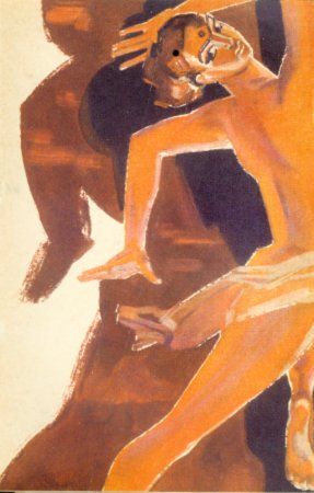 Она приближалась и отступала, резко выпрямляясь, и шаг за шагом делалась все отрешеннее и недоступнее. Без всяких украшений, без актерства или условных жестов танца, нагая девушка была правдивой и откровенной наедине с собой и господином мира — Джагганатхом. Художник, не смея пошевелиться, смотрел на Тиллоттаму, даже не подумав, что совершает нехороший поступок, подглядывая чужую тайну. Танцовщица была выше этого, как древняя богиня, настоящая апсара. Ее тело было даже прекраснее, чем он представлял себе. Ни малейшего колебания, угрызения совести не было в душе художника — только чистое созерцание красоты и легкое ошеломление от невероятности происходящего. Где-то в глубине памяти шевельнулось сознание, что он слышал об этом… Великие боги! Тиллоттама выполняла танец так, как он был описан в книге известного искусствоведа Индии Аджита Мукерджи, вышедшей всего шесть лет назад. Да, конечно! «Шаг за шагом она становилась символом отказа от желаний, — вспоминал художник, — звеном между прошлым и настоящим, видимым и невидимым. Уничтожая все следы себя, она находила свое „я“ в изображениях, созданных и подлежащих созданию, и кое-что большее, что мир безусловной реальности никогда не мог найти». Какое гениальное описание танца арати, и вот его исполнение! Даярам был уверен, что Тиллоттама прочла Мукерджи и выполняла его указания. Зачем? Танцовщица остановилась, замерев на месте. Медленно, будто во сне, она сделала два шага к прямоугольному выступу небольшого древнего алтаря и так же медленно опустилась на колени, склонив голову и высоко подняв руки. Ее тело струилось — так плавны и незаметны были движения. Полушепотом, на чистейшем санскрите, танцовщица произнесла не то молитву, не то заклинание, и слова ее поразили Даярама не меньше, чем танец. Она молила богов о всех, таких, как она, жертвах на алтаре любви. Тех, с горячей кровью и сильным телом, которых оскорбляли и обманывали без счета и меры, снова и снова, топча достоинство, веру, стремление к светлой жизни… Не успел Рамамурти опомниться, как легкое дуновение ее губ погасило светильники. Мгновенно все исчезло в непроницаемом мраке. Даярам отступил за выступ стены, вжался в нишу. Едва слышно прозвучали легкие шаги. Художник долго стоял во тьме и молчании, потом вышел в портик и осторожно огляделся. Высоко и торжествующе поднялась луна, статуи на стенах еще сильнее выступили из ниш, но художник уже не мог любоваться ими. Он видел тайну живой красоты, во сто крат более захватывающей, чем все статуи Кхаджурахо, он приобщился к обряду незапамятной древности. «Она находила свое „я“ в изображениях… созданных или еще подлежащих созданию…» — снова прозвучали в нем слова Мукерджи. «Подлежащих созданию»… да как он не понял, сами боги посылают ему модель для создания Анупамсундарты Парамрати! Только она, Амрита-Тиллоттама, вдохновит его, простого художника, и даст ему силу для подвига, которого он один не сможет совершить! Неопределенное сознание своей мощи, пришедшее к нему этой ночью, теперь стало реальным, собранным чувством отваги и уверенности. Даярам бросился грудью на плиты северной стороны храма, приятно холодившие разгоряченное тело, а затем перевернулся на спину, уносясь взором в глубину небосвода, где лунные лучи вели борьбу с едва заметными звездами. Рамамурти явился в деревн