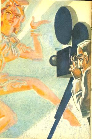 Даярам выскочил из ниши, слепо устремившись в темноту галереи, вместо того чтобы укрыться в святилище. — Начали! — заорал невидимый и оборвал команду, когда Рамамурти запутался в проводах, протянутых поперек галереи, и повалился, увлекая за собой треножники с прожекторами. — Что там такое, сыны свиньи? Дайте свет в галерею! — Хулиган забрался в храм, Хазруди-махашай! — Ловите гадюку, бейте чем попало! — заорал мегафон. — Ахмед и ты, Алибег! Даярам вскочил, увернулся от налетевшего на него человека в синем тюрбане и отскочил в темноту. Теперь знание всех закоулков храма было на его стороне, и через несколько минут, весь дрожа, он укрылся на том же высоком балконе, где спал полчаса назад. Гудение за стеной стало отчетливее. Теперь из галерей и с балконов в темноту били пучки сильного света. Барабаны глухо отдавались в коническом потолке гарбхагрихи, и Рамамурти ярко представил себе, как сейчас там, внизу, Тиллоттама, вся залитая лучами прожекторов, исполняет свой тантрический танец. Исполняет — это верное слово! Так вот в чем тайна девушки — она артистка кино! И ее вчерашний одухотворенный и одинокий танец всего лишь подготовка настроения к роли девадаси! О боги! Но чего же он, собственно, ожидал — что девушка окажется служительницей неведомых богов и жрицей давно умерших обрядов? Как могло бы это быть? Только в исступленной фантазии художника… Ревнивое, ядовитое чувство жгло Даярама. Она пришла, опоздав на полчаса, в пределах индийской нормы. Но чувство времени у нее, видимо, было европейское, потому что она стала оправдываться: — Случилось непредвиденное обстоятельство, и мне пришлось задержаться. — Знаю! Это непредвиденное — я. Я запутался в проводах и опрокинул ваши осветители, — угрюмо признался художник, оставив первоначальную мысль скрыть свое участие. Тиллоттама выпрямилась, оттолкнувшись от перил балкона, и некоторое время молчала, затем спросила очень тихо: — Вы все видели? — Да! Прошло несколько минут, пока Тиллоттама сказала: — Я не собираюсь скрываться. Просто мне хотелось, чтоб вы узнали все, что нужно, когда вы… я… мы лучше познакомимся. — Она провела рукой по лицу и шепнула: — Даярам! — Имя художника, произнесенное ею едва слышно, будто придало храбрости Тиллоттаме. Она продолжала быстро и решительно: — Вы не верите мне? Вы еще не видите… — Нет, вижу! Я увидел вас еще тогда, когда вы склонялись над изваянием женщины у льва! Когда вы слушали мои рассуждения о древних художниках, замирали перед сурасундари. И более всего, когда вы пытались познать сущность жизни через священный танец арати, одна, поздней ночью, вчера. Тиллоттама подавила крик изумления, отступив, насколько позволяла ограда балкона. Рамамурти сделал шаг к недвижно застывшей Тиллоттаме. — Вчера… — И художник разразился потоком несвязных слов, пытаясь выразить всю глубину своих переживаний при виде живого образа многолетних грез об Анупамсундарте. О приливе героической силы, зове подвига, о стремлении пасть на колени и молить сделаться моделью, неприкосновенной небесной апсарой. Даярам, и в самом деле пораженный необычайной силой чувств, опустился на колени и поднял взгляд вверх, к огромным глазам Тиллоттамы, еще более расширившимся на побледневшем лице. — Было ли когда-нибудь, что модель художника не становилась его возлюбленной? Было? Отвечайте! — с