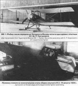 История первых советских самолетов-истребителей началась с момента образования конструкторского бюро на московском авиазаводе №1 (бывший «Дукс») в январе 1923 г. Первое время его руководителем был Н. Н. Поликарпов, однако уже в феврале на эту должность назначили Д. П. Григоровича, который незадолго до того появился в Москве. Социальный статус Дмитрия Павловича был все еще неопределен, ходили слухи, что он несколько лет находился на юге и даже принимал участие в организации авиапромышленности у белых. По крайней мере, известно, что в 1918 г., когда в Петрограде стало очень голодно и неспокойно, он перебрался поначалу в Киев, затем – в Одессу, далее – в Таганрог. В связи с эскалацией гражданской войны намеревался эмигрировать, однако по причинам личного свойства задержался в России. Таганрогский авиазавод в то время занимался, в основном, ремонтом самолетов и авиамоторов. Там даже был спроектирован истребитель МК-1 «Рыбка», к чему, как считается, Григорович имел непосредственное отношение. Казалось, уже этих подозрений было достаточно для того, чтобы новая власть доставила конструктору значительные неприятности. Тем не менее, отношение к нему было подчеркнуто благожелательным, прежде всего со стороны Авиаотдела ГУВП ВСНХ*. Связано такое отношение было с широкой известностью создателя знаменитых летающих лодок М-5 и М-9. Кроме того, Григорович оказался единственным в постреволюционной России конструктором, обладающим не только именем, но и опытом. Поэтому именно его кандидатура без особых сомнений была утверждена на должность начальника КБ ГАЗ № 1. Оба начальника – старый и новый – выдвинули свои концепции будущего истребителя. Практически параллельно разрабатывались две машины, обе – под американские двигатели «Либерти» мощностью 400 л. с., производство которых разворачивалось в Советской России под обозначением М-5. Но если создание самолета Григоровича велось как официальная опытная работа ГАЗ № 1, то поликарповская машина строилась инициативно, исключительно в нерабочее время и даже по ночам. Отчасти связано это было с некоторой нелегальностью положения Николая Николаевича на заводе – с приходом нового начальника его перевели на работу в Главкоавиа**. Кроме того, заводская опытная мастерская была занята самолетом Григоровича, и доступ туда Поликарпову был закрыт. Тем не менее, разработанный его группой моноплан ИЛ-400 (подробно см. «АиВ», № 3'97) попал на аэродром раньше своего конкурента, и лишь неудачная попытка взлета 15 августа 1923 г. неожиданным образом усилила позиции Григоровича.